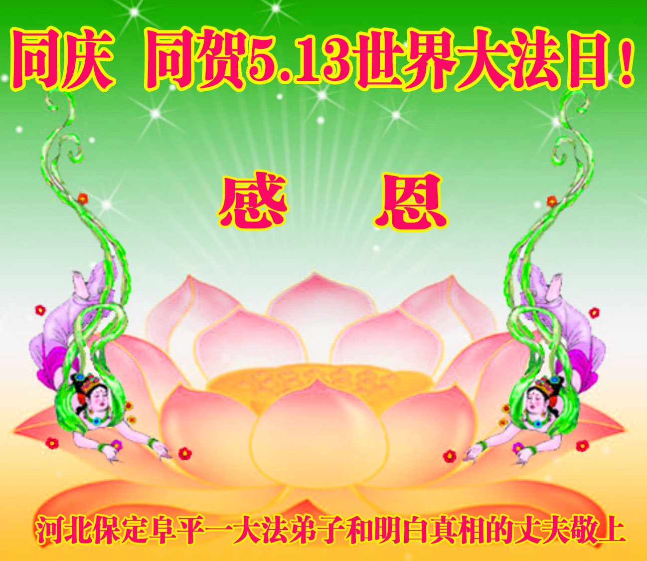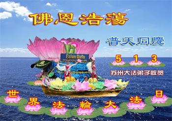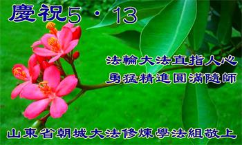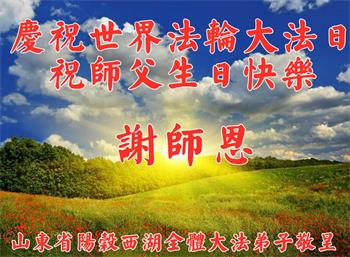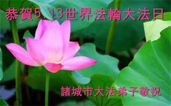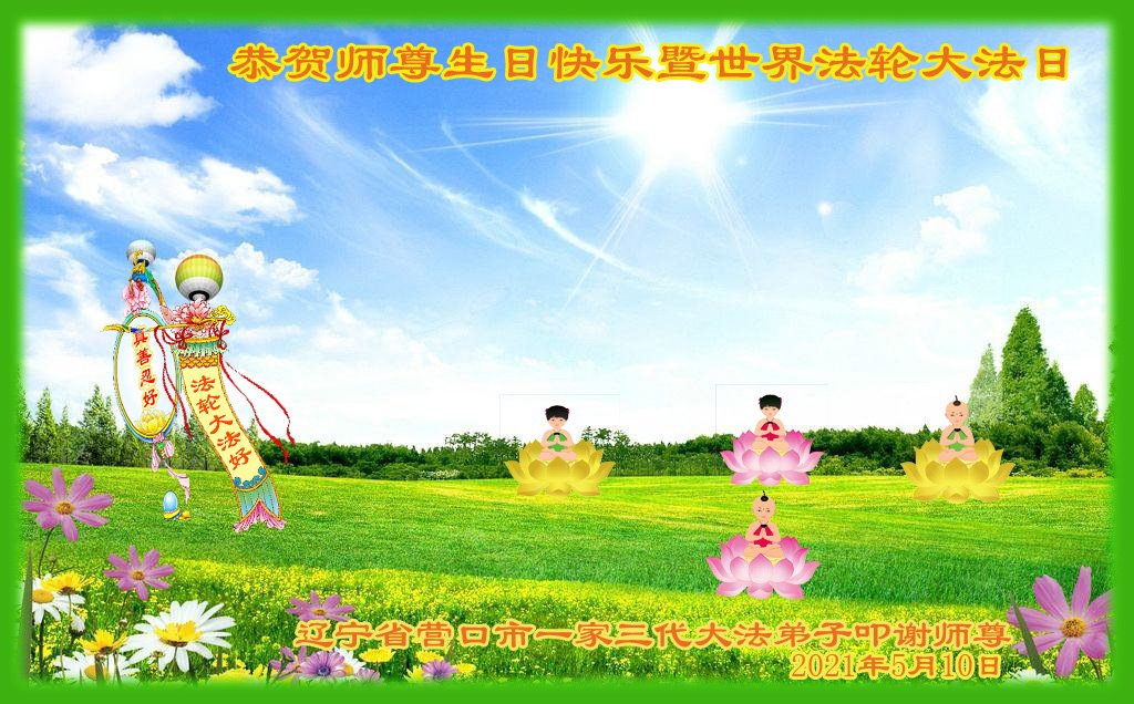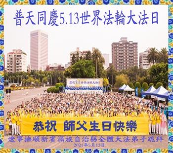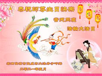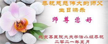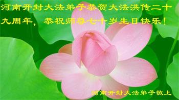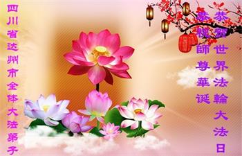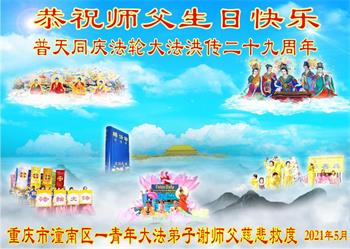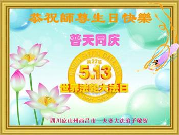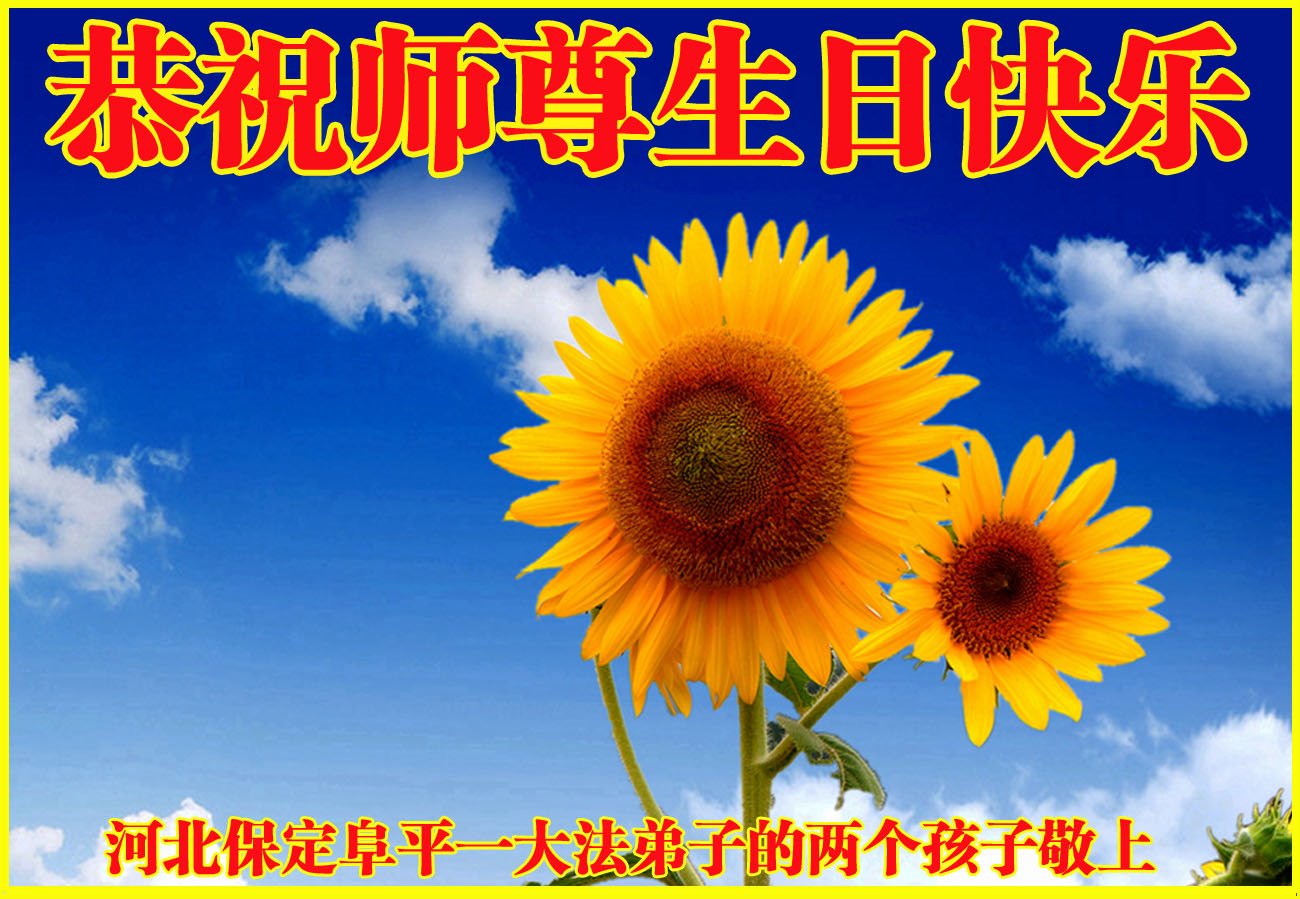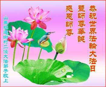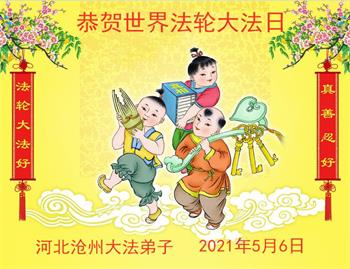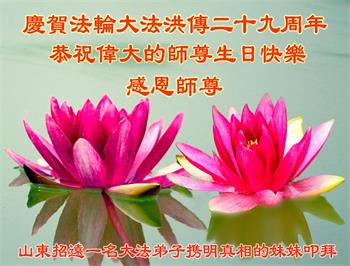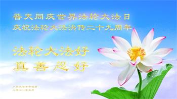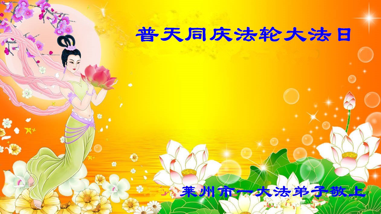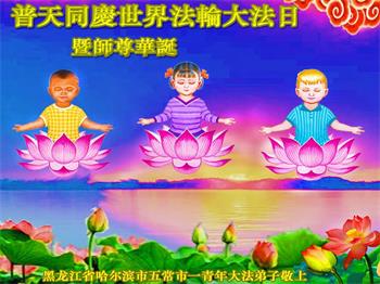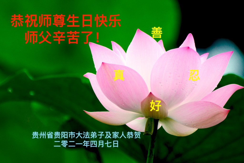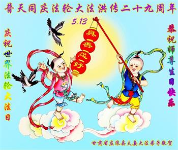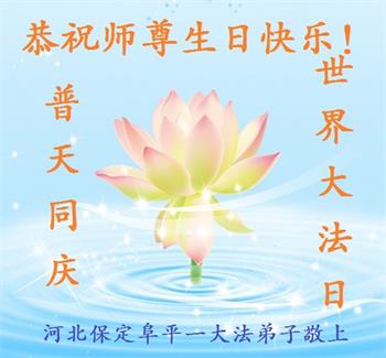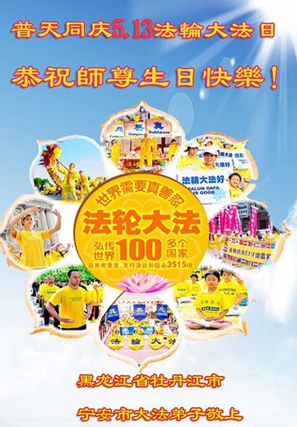 福建省福州市一大法弟子在贺词中说:“弟子双手合十,发自心底的恭祝慈悲伟大的师父华诞!每当5·13这辉煌的日子到来之际,弟子内心都充满对师父的无比感恩和思念。是师父把我脱胎换骨,重塑成一个全新的真我。”