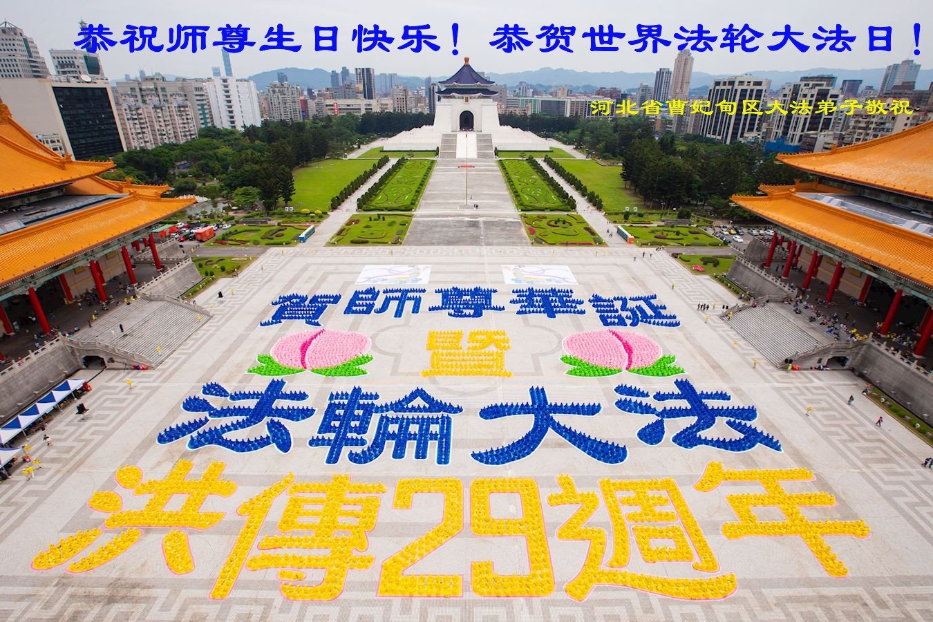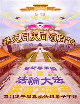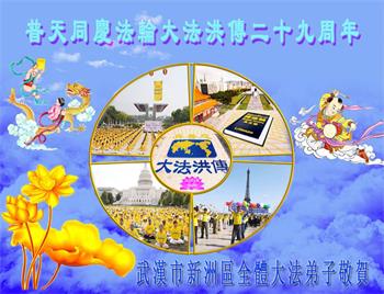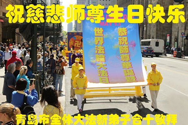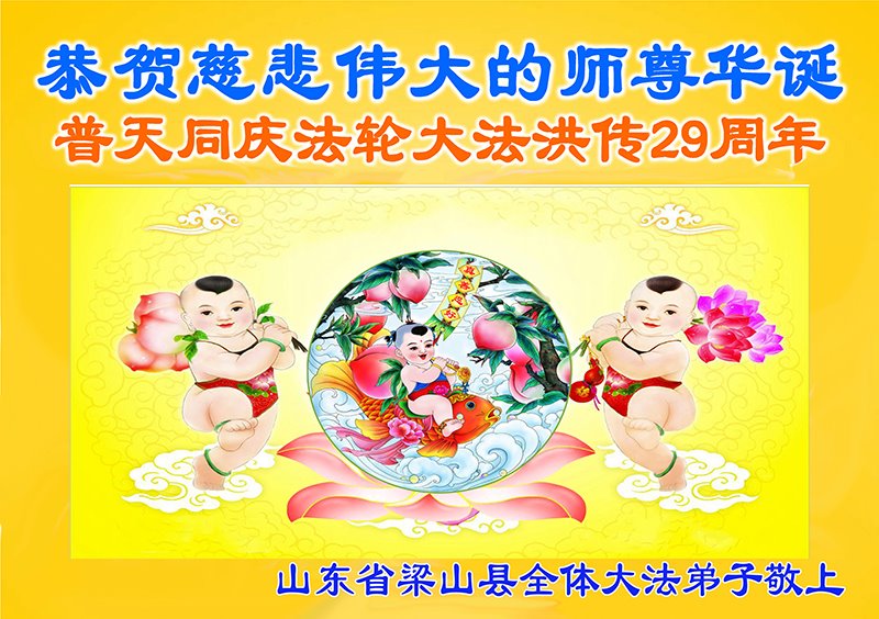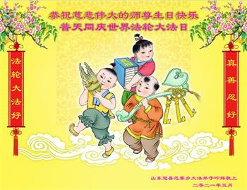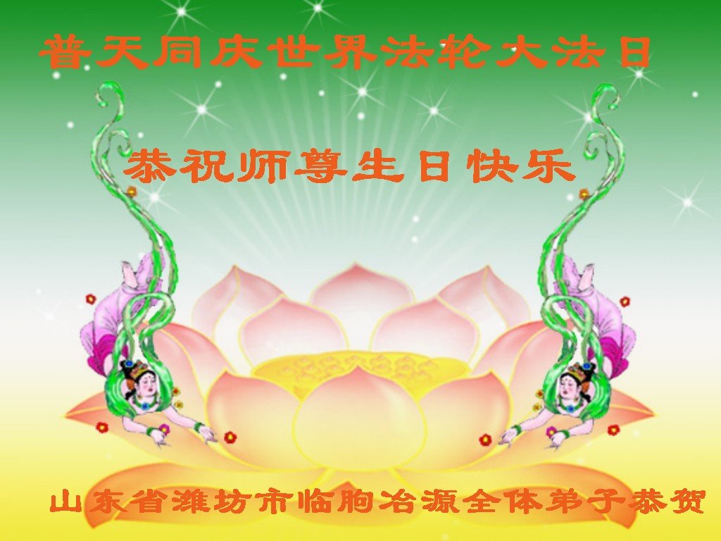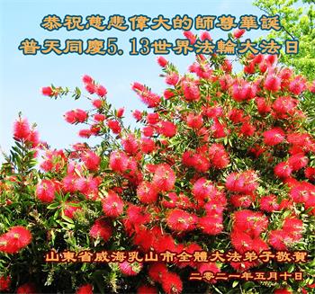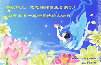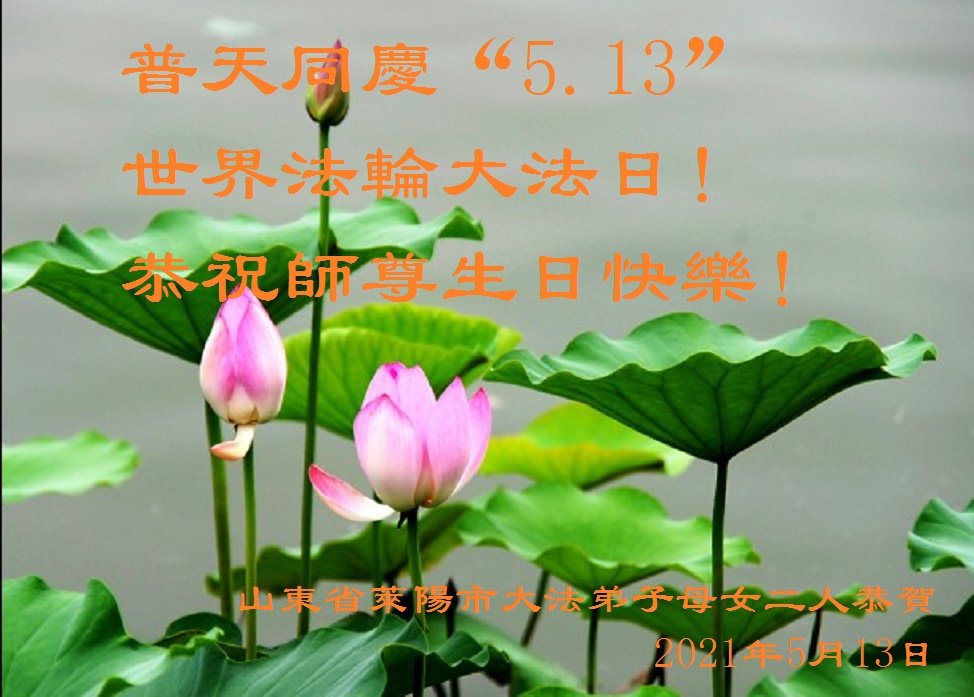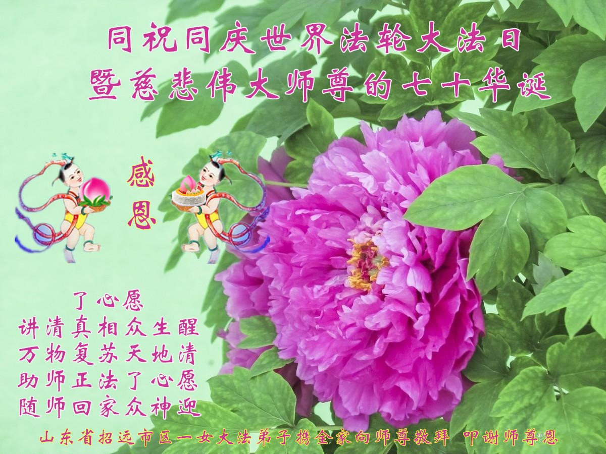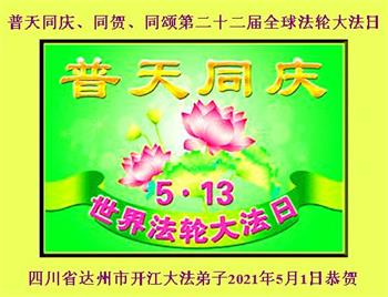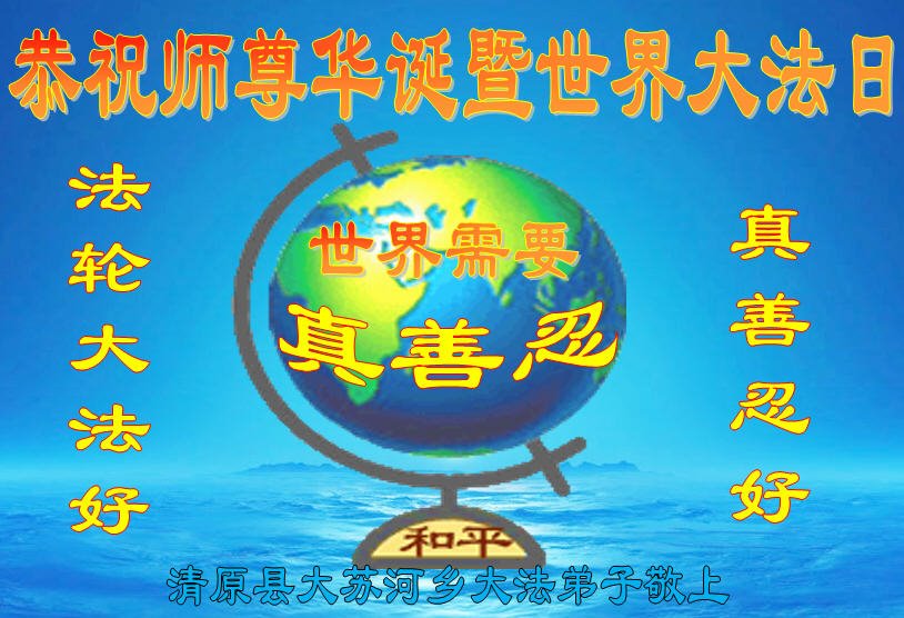 福建省福州市一大法弟子在贺词中说:“弟子双手合十,发自心底的恭祝慈悲伟大的师父华诞!每当5·13这辉煌的日子到来之际,弟子内心都充满对师父的无比感恩和思念。是师父把我脱胎换骨,重塑成一个全新的真我。”