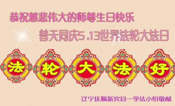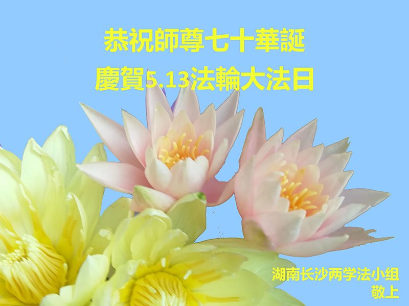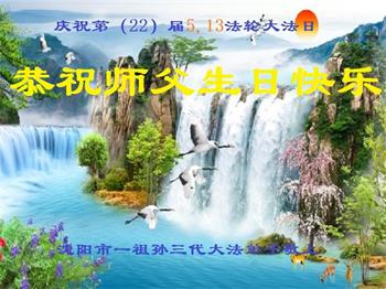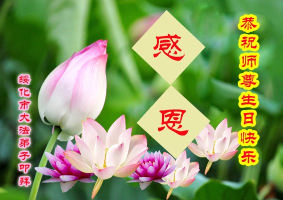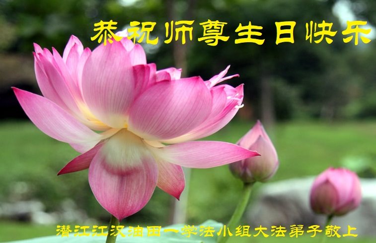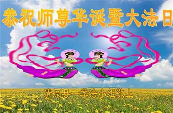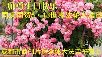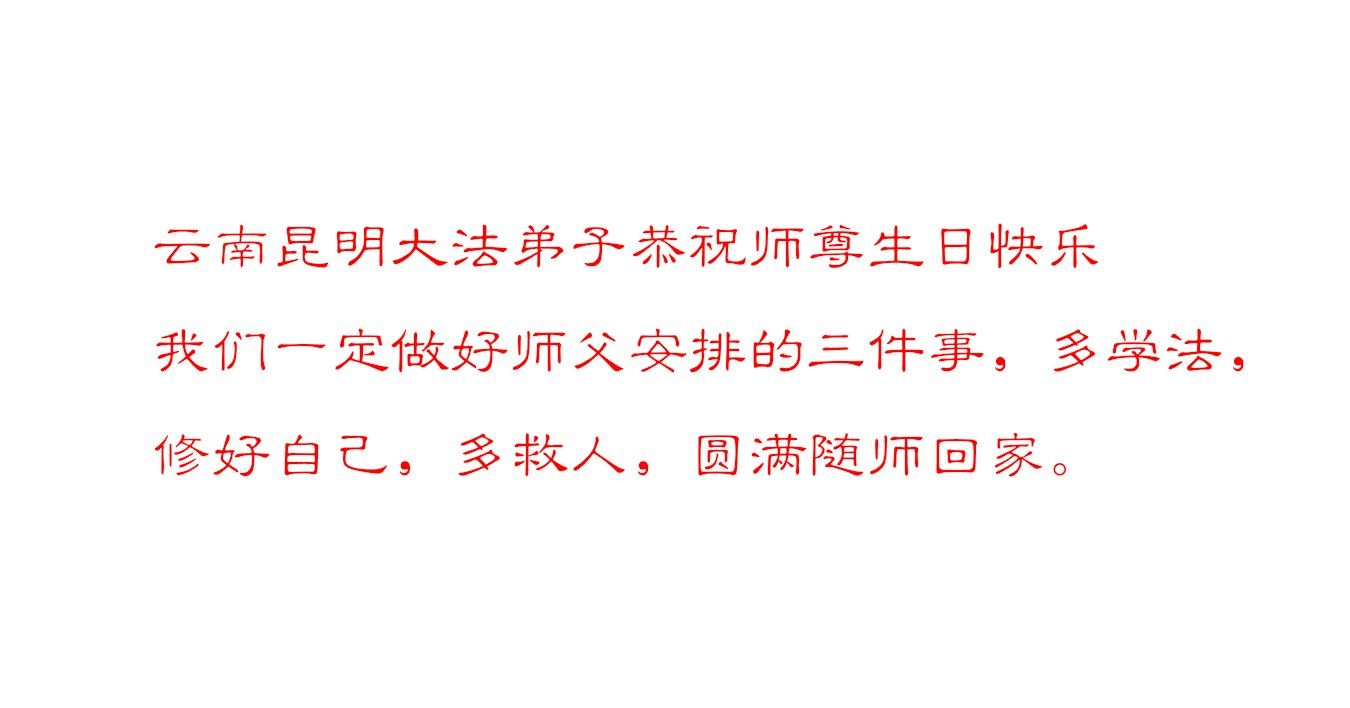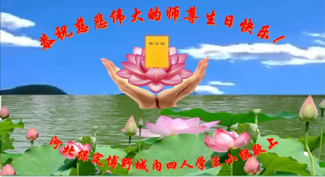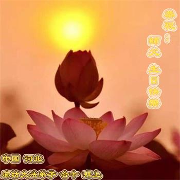 师尊生日即将到来,我们学法小组全体大法弟子恭祝师尊生日快乐!并代表我们的家人和明真相得福报的世人,祝伟大慈悲的师父生日快乐!感恩师父的慈悲救度,得救的众生祝师父生日快乐!我们学法小组整体配合,提高心性,学好法做好三件事,多救众生,感谢师父的慈悲救度。
