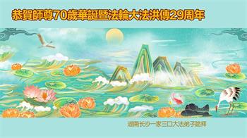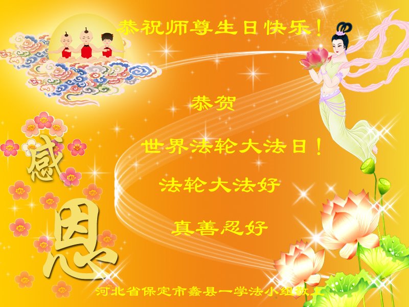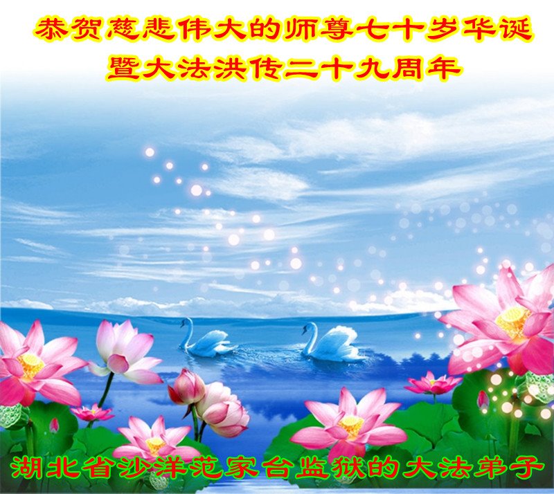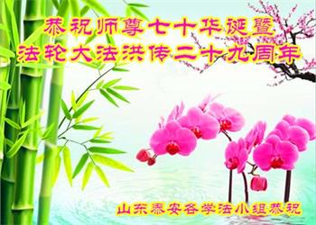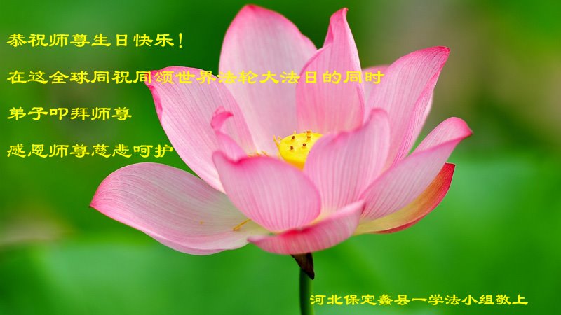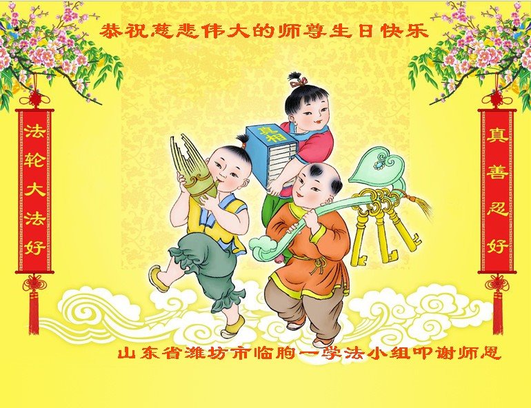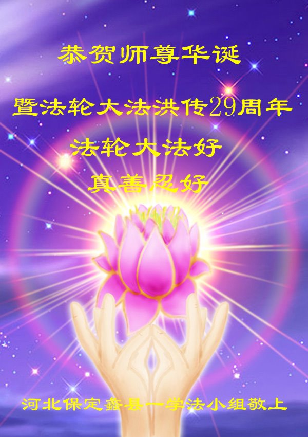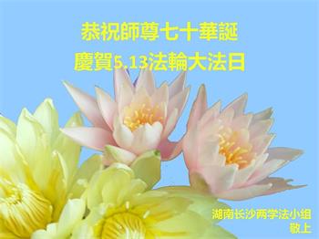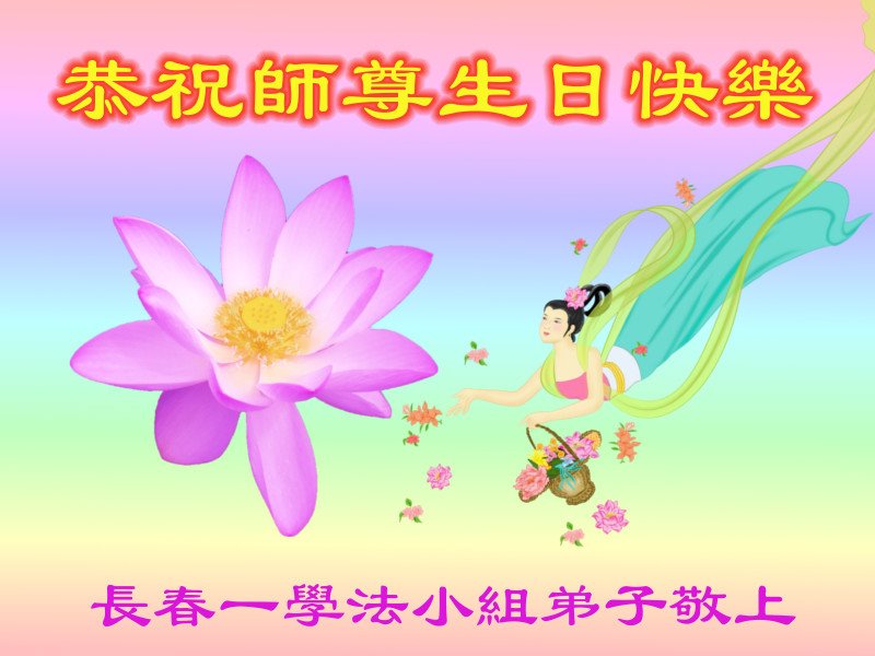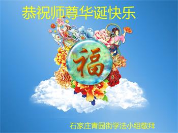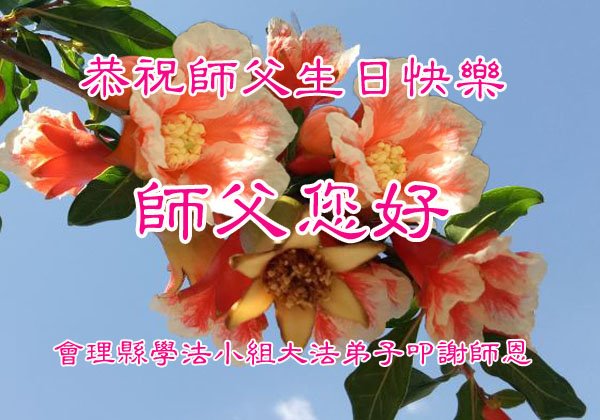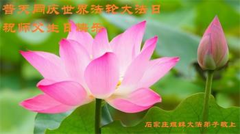 师尊生日即将到来,我们学法小组全体大法弟子恭祝师尊生日快乐!并代表我们的家人和明真相得福报的世人,祝伟大慈悲的师父生日快乐!感恩师父的慈悲救度,得救的众生祝师父生日快乐!我们学法小组整体配合,提高心性,学好法做好三件事,多救众生,感谢师父的慈悲救度。