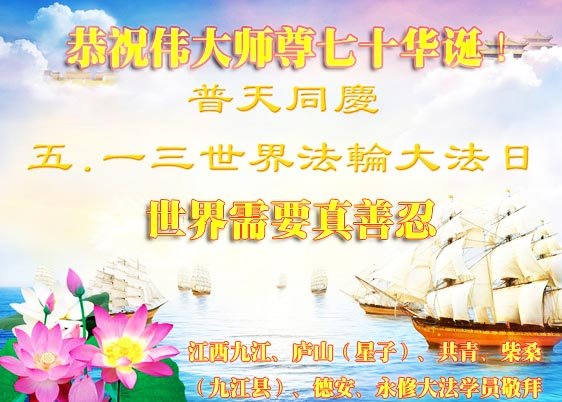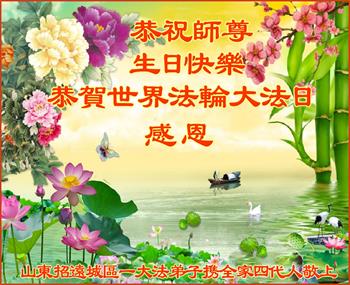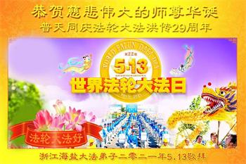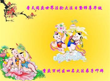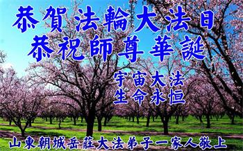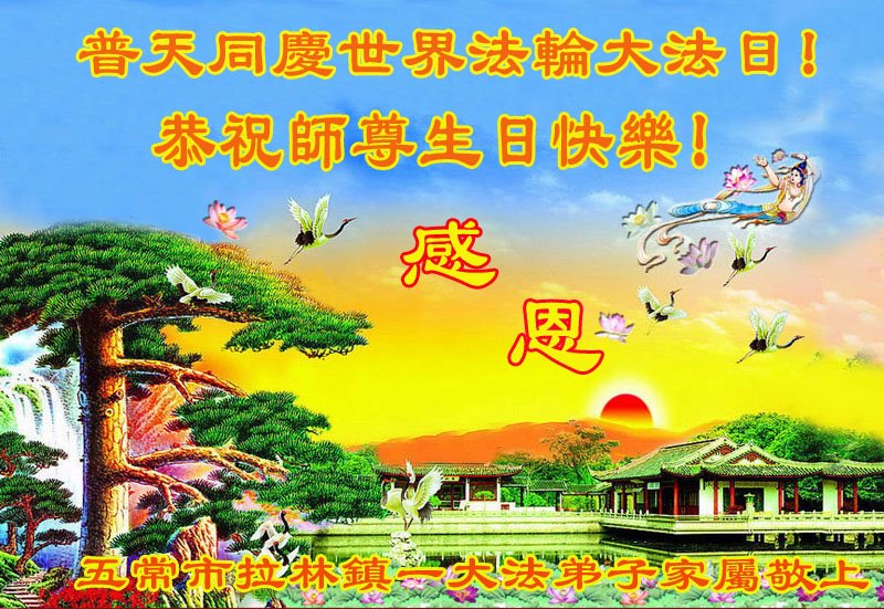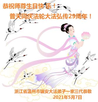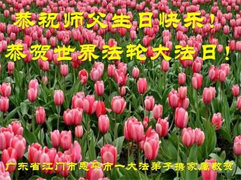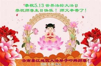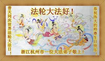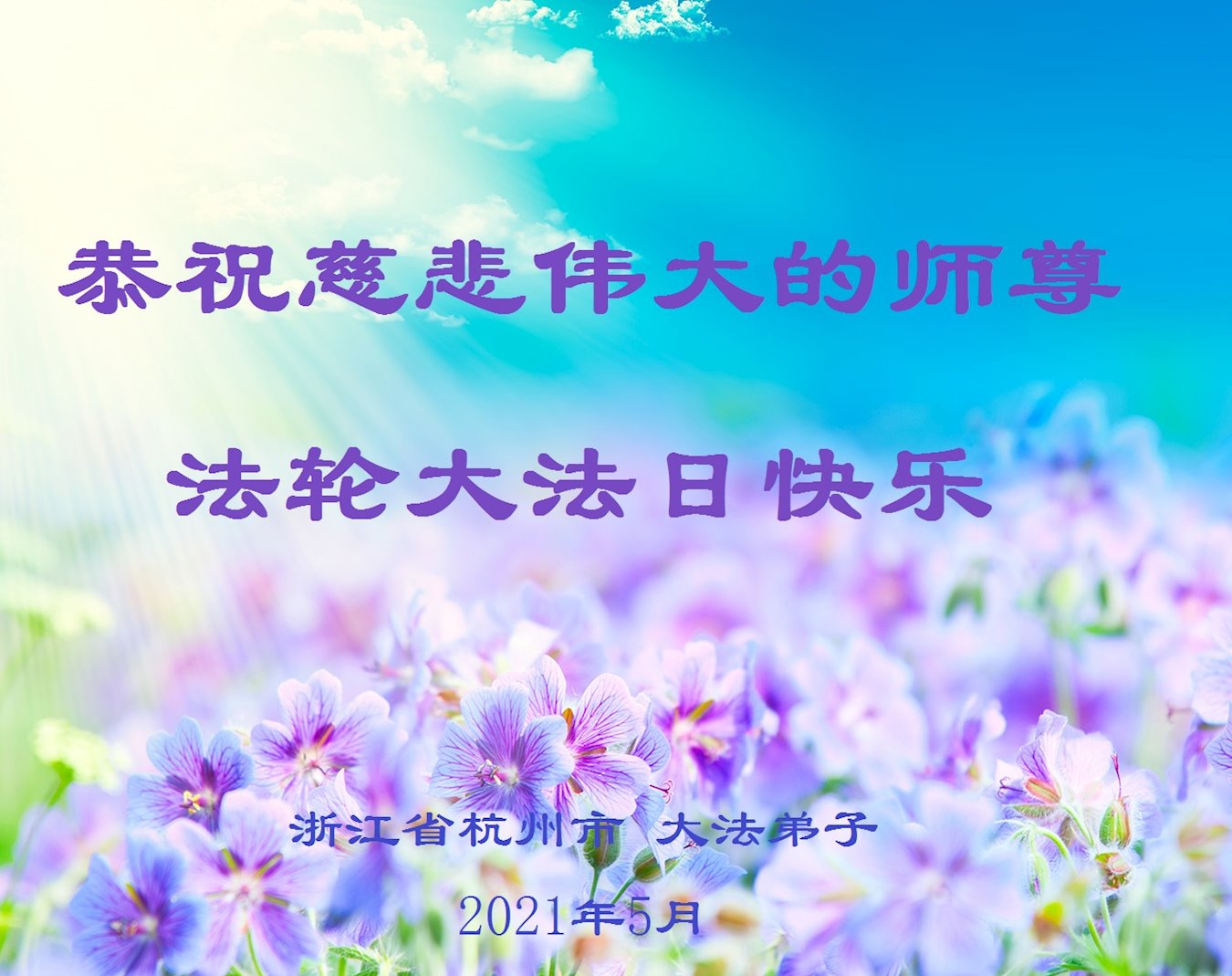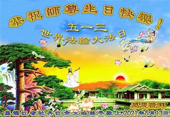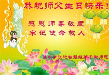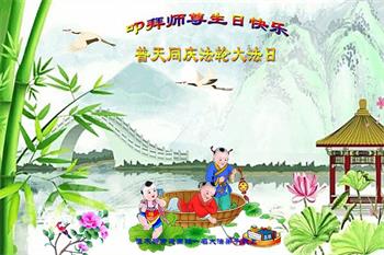 在这普天同庆的日子里,浙江省宁波余姚市全体大法弟子恭贺师尊生日快乐!暨法轮大法日!弟子一定会勇猛精進,做好三件事。
