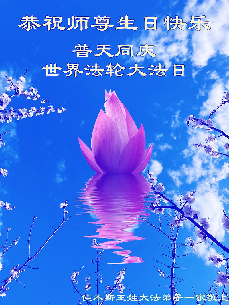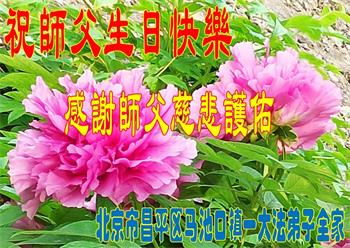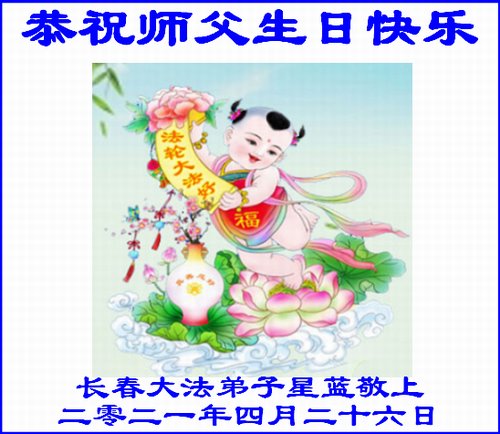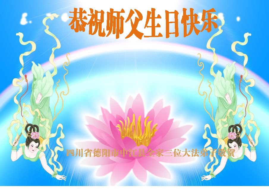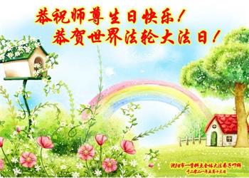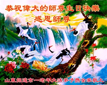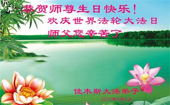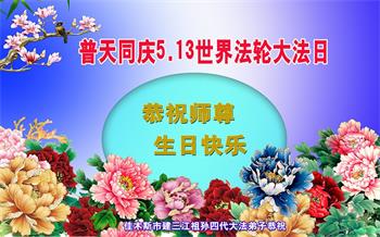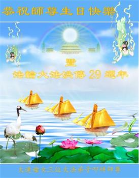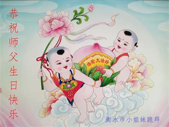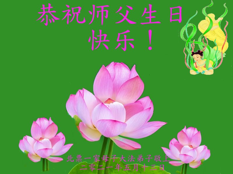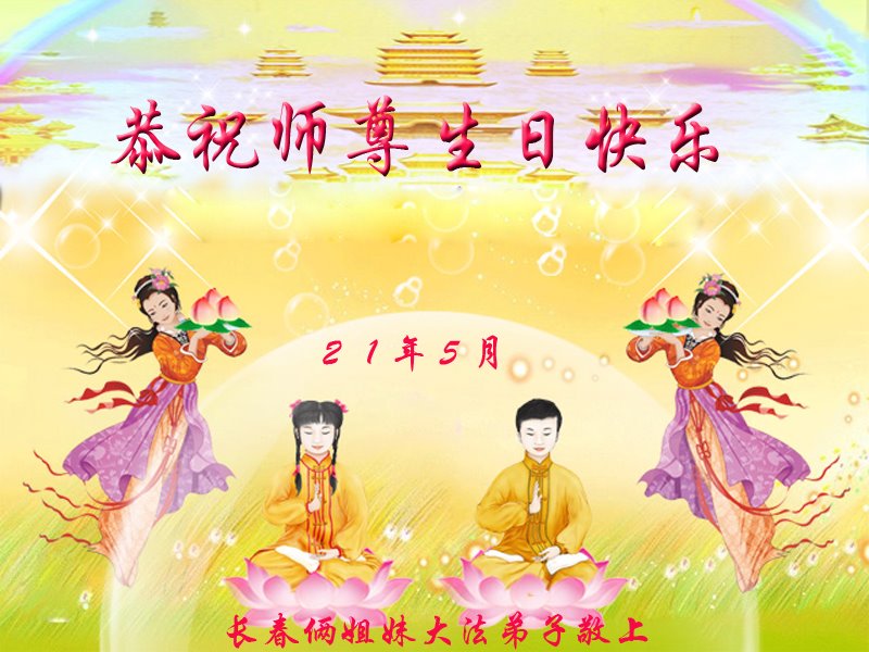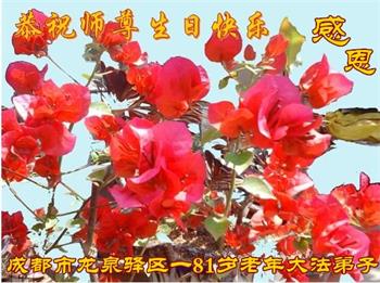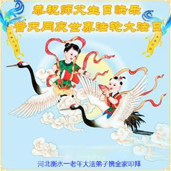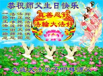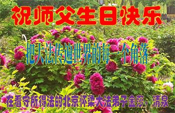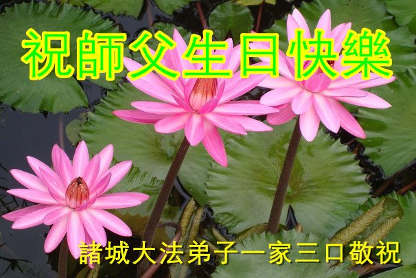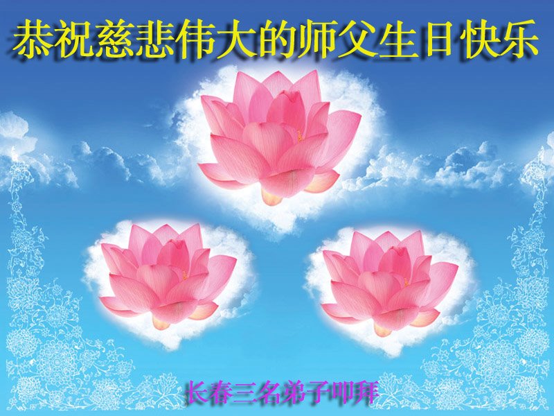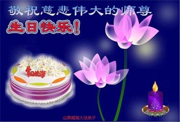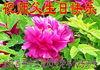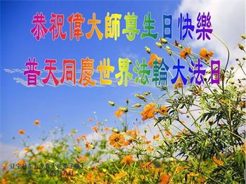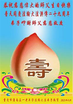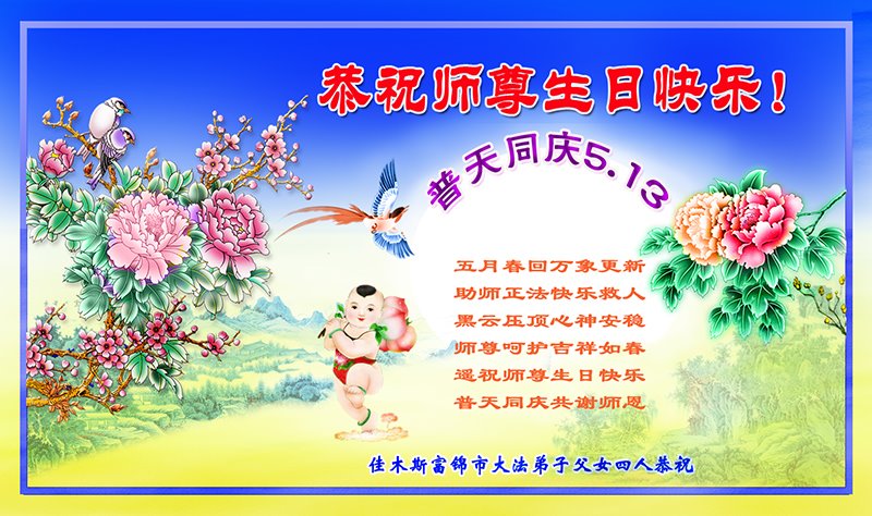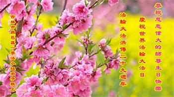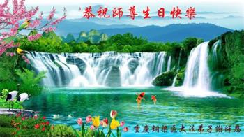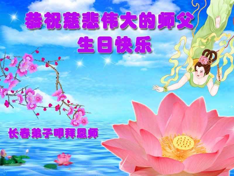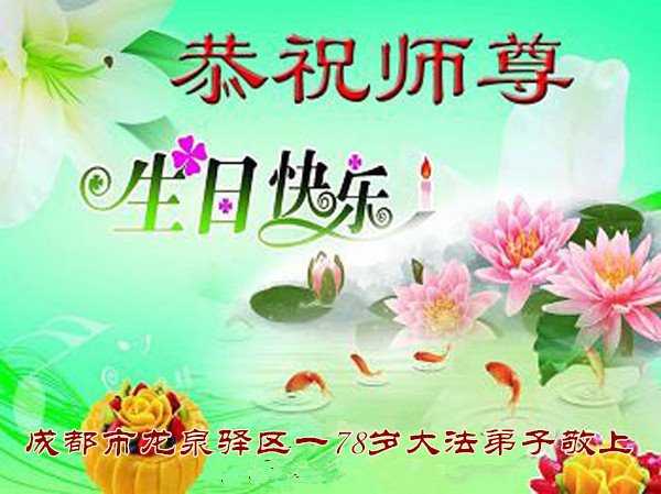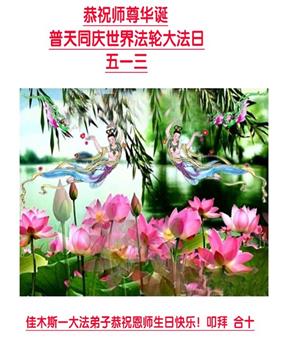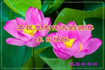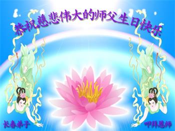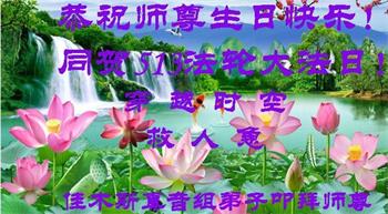 我们都是老年大法弟子,我们都没有见过师父,在师父华诞来临之际,我们都非常想念师父,只能远离重洋遥祝慈悲伟大的师父生日快乐!