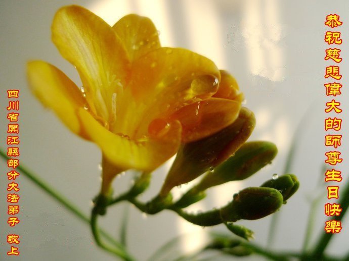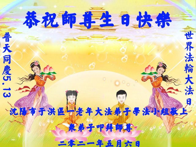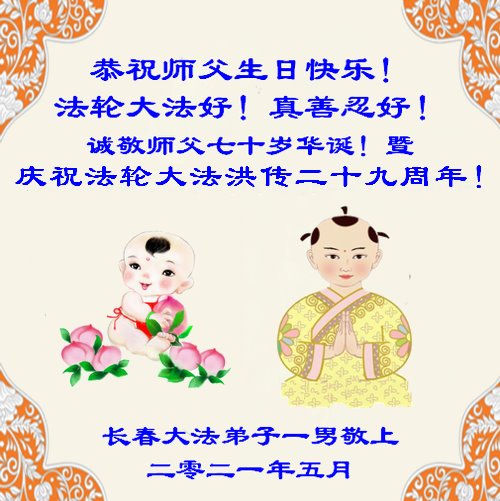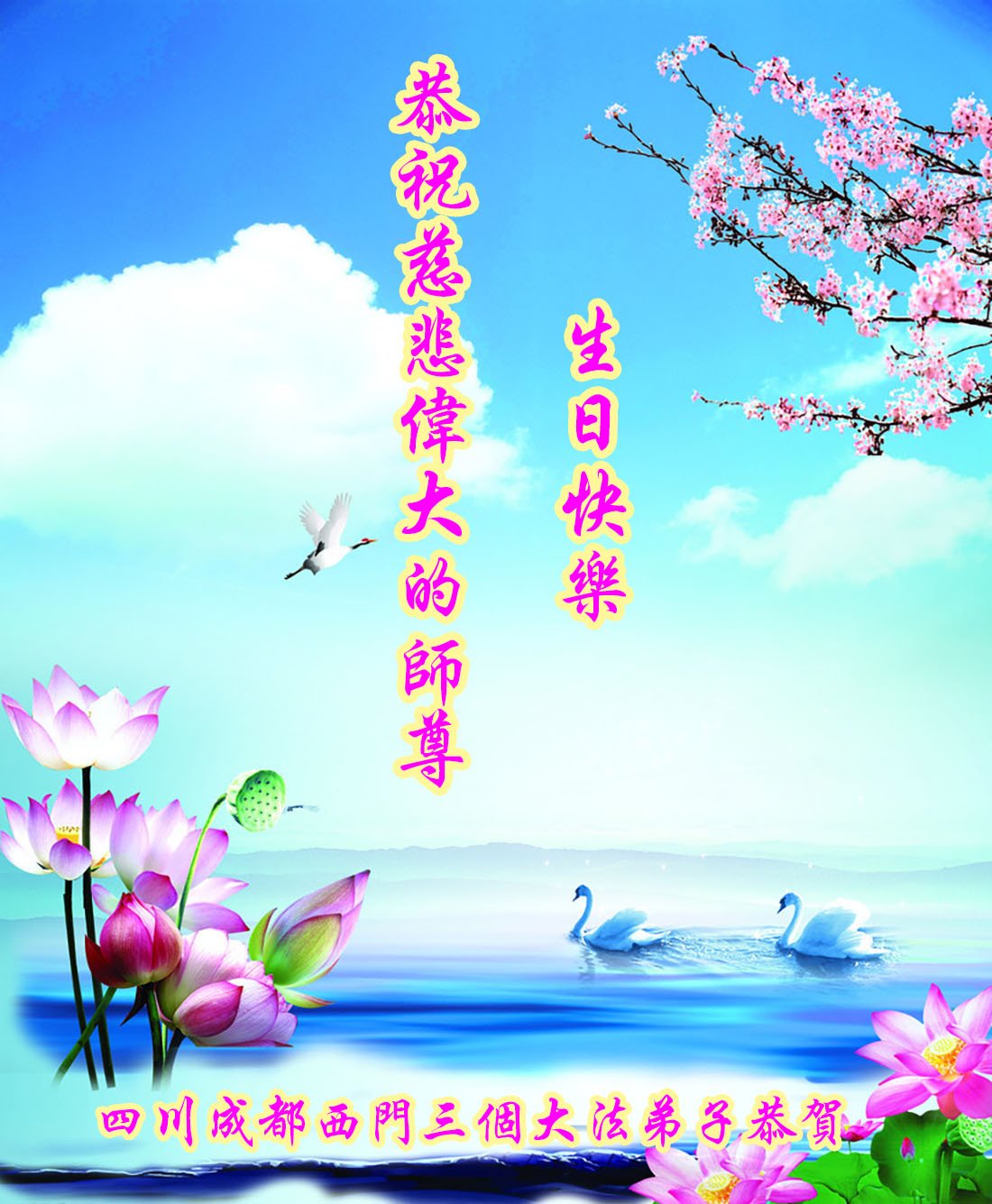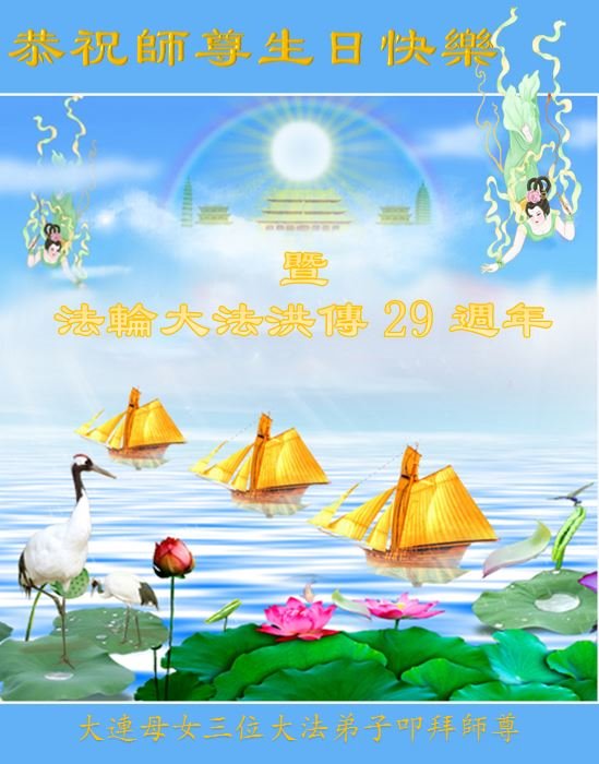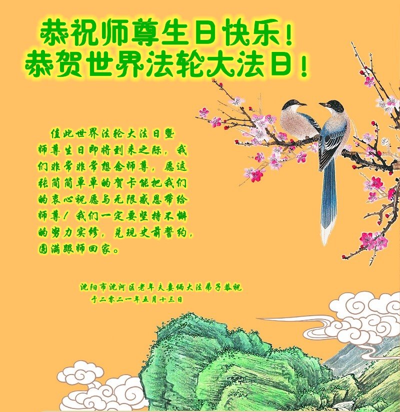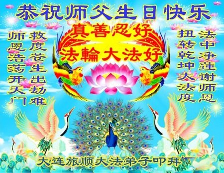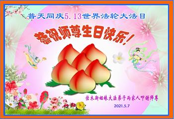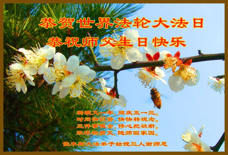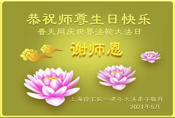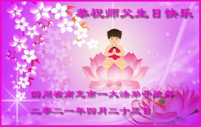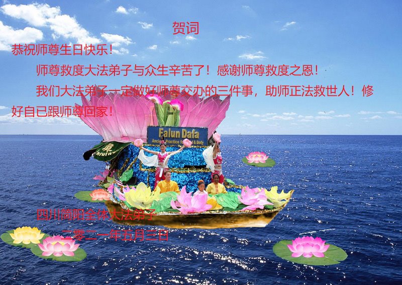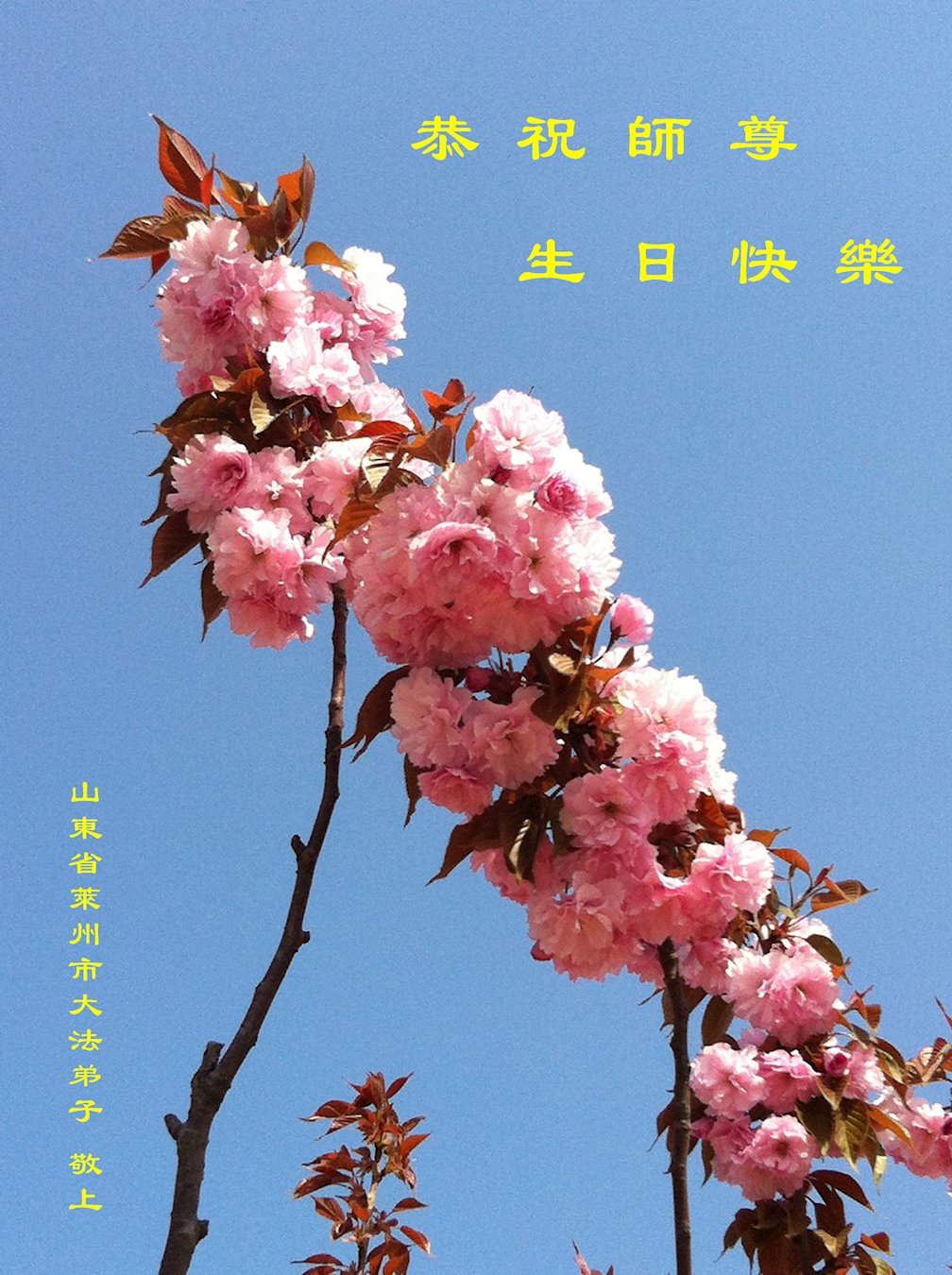 我们都是老年大法弟子,我们都没有见过师父,在师父华诞来临之际,我们都非常想念师父,只能远离重洋遥祝慈悲伟大的师父生日快乐!
