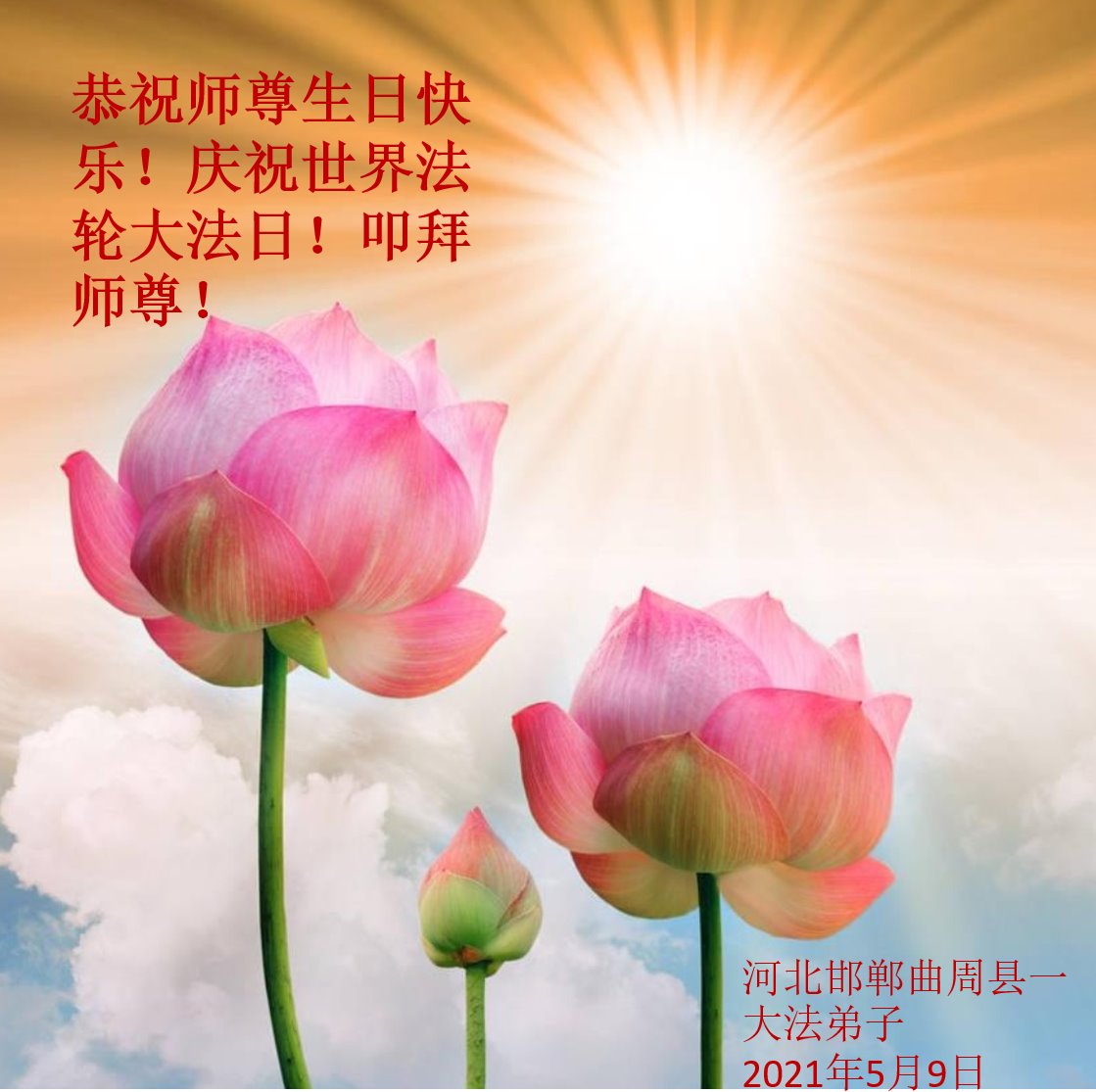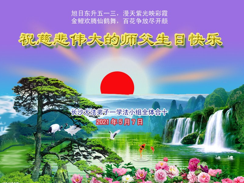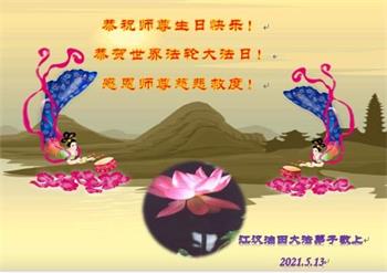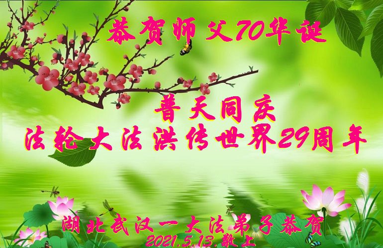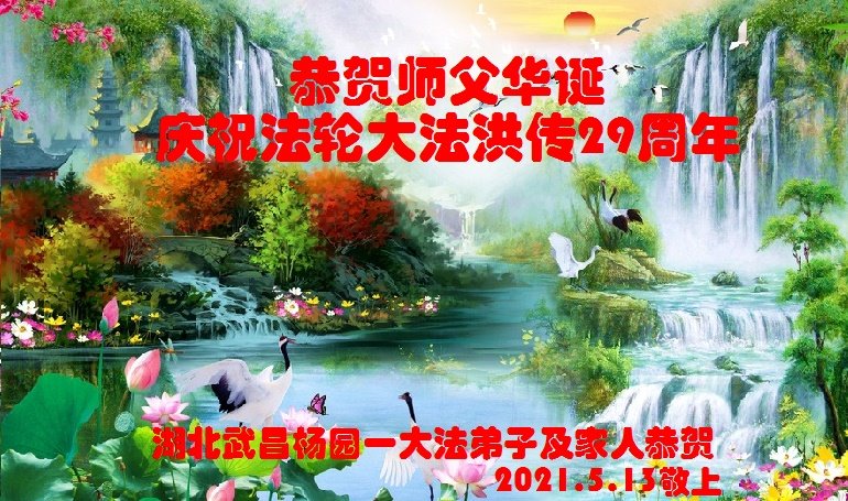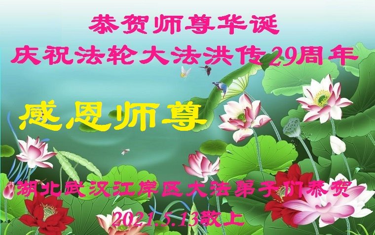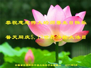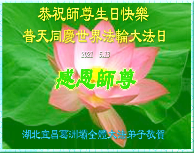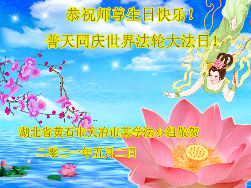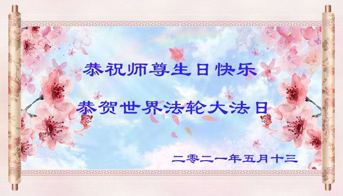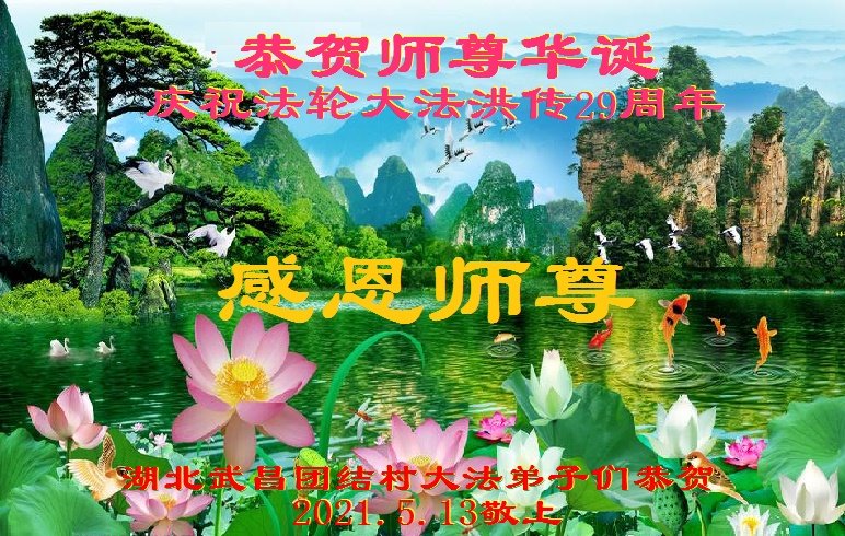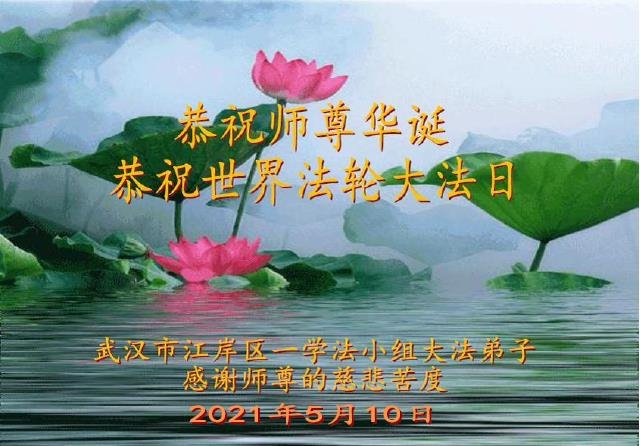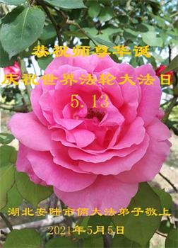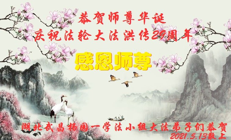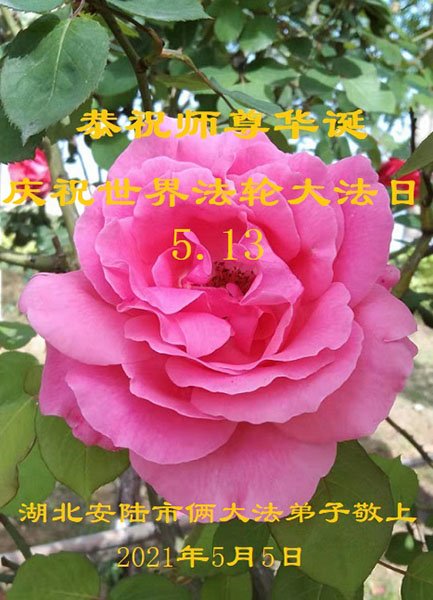 在二零二一年五一三世界法轮大法日即将到来之际,在这普天同庆同庆的时刻,湖北省孝感市安陆市一学法小组在此遥祝慈悲伟大的师尊生日快乐!我们会继续做好助师正法,救度众生的事,谢谢师尊。