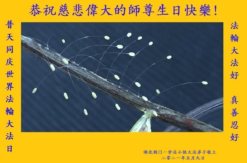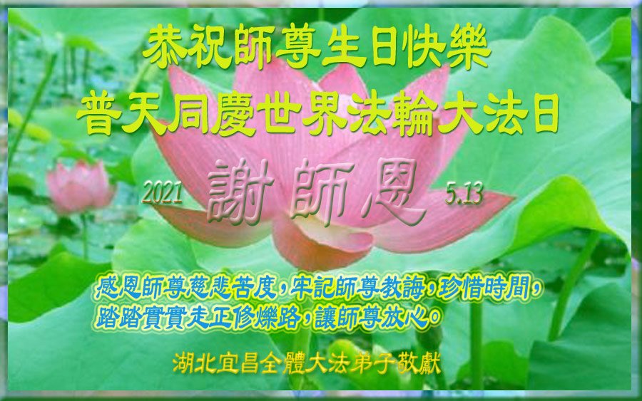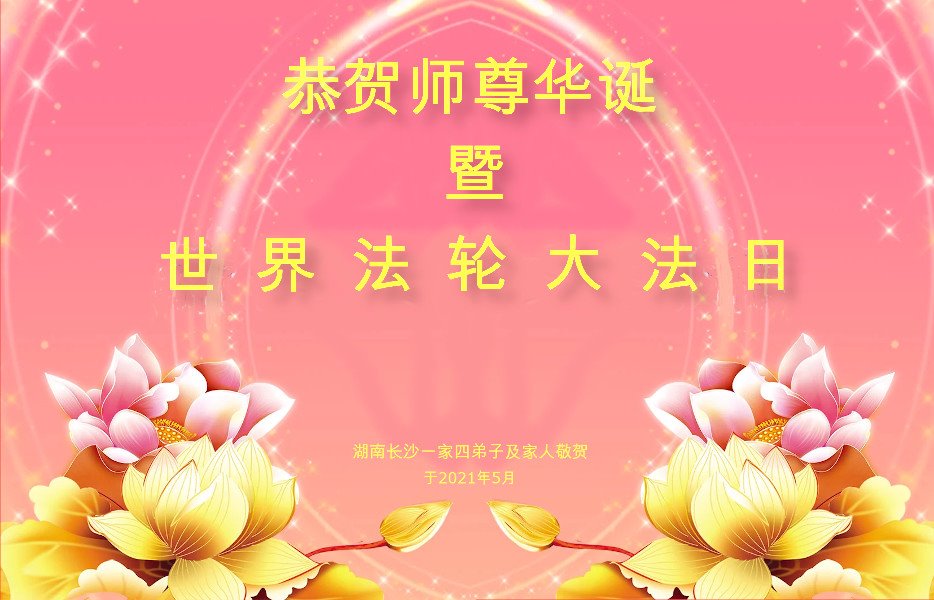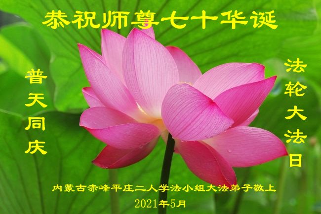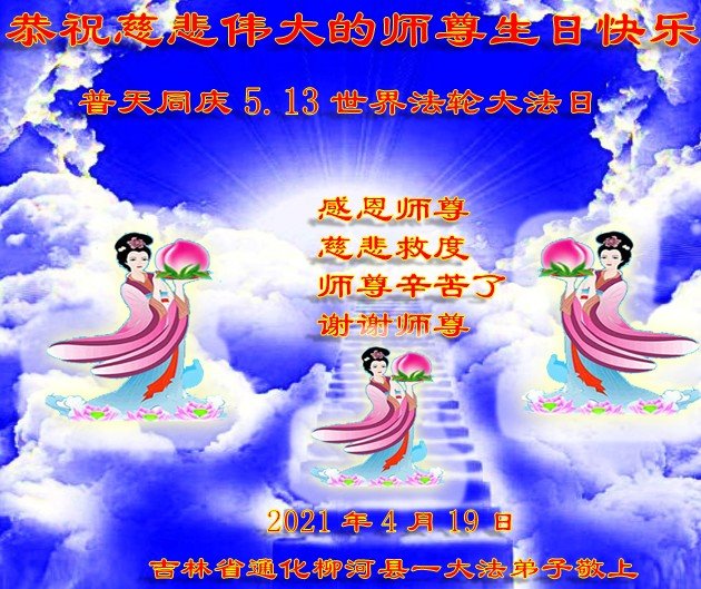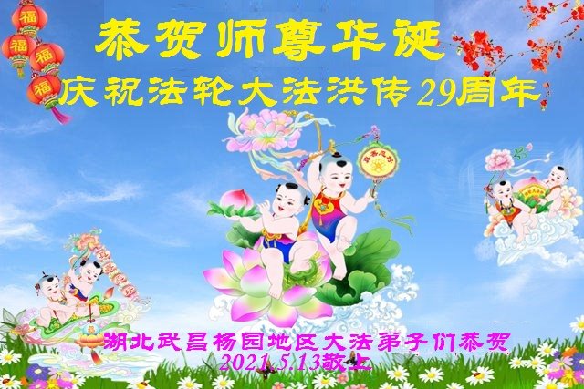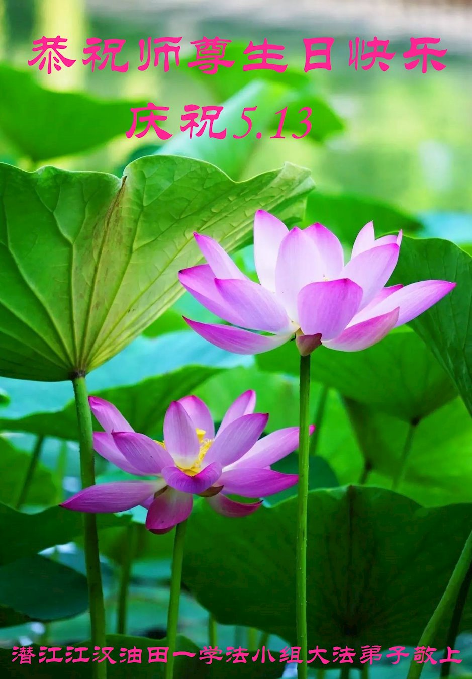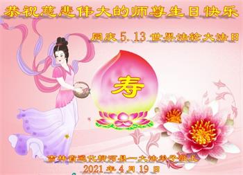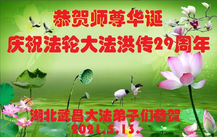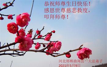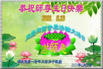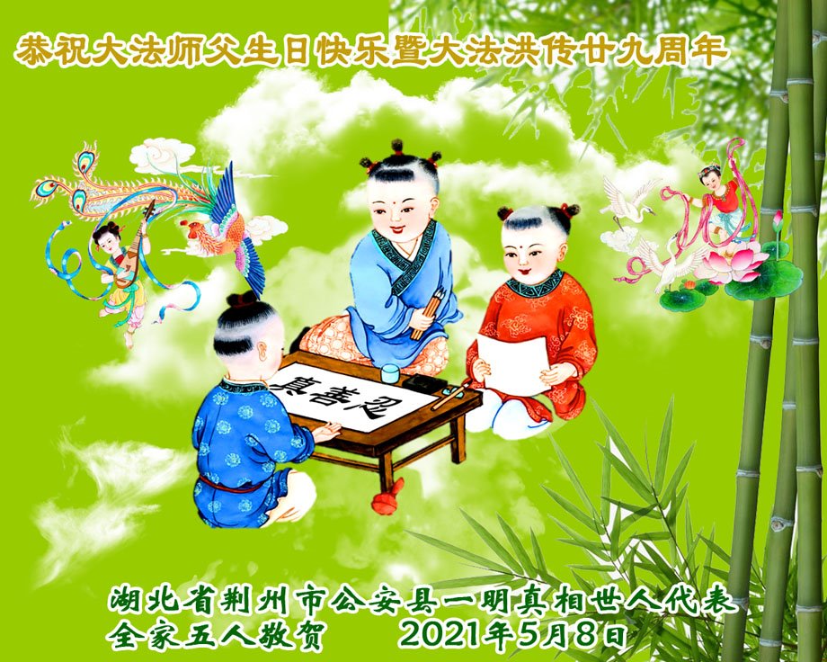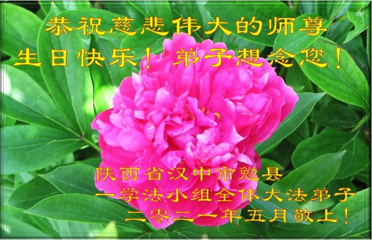 在二零二一年五一三世界法轮大法日即将到来之际,在这普天同庆同庆的时刻,湖北省孝感市安陆市一学法小组在此遥祝慈悲伟大的师尊生日快乐!我们会继续做好助师正法,救度众生的事,谢谢师尊。