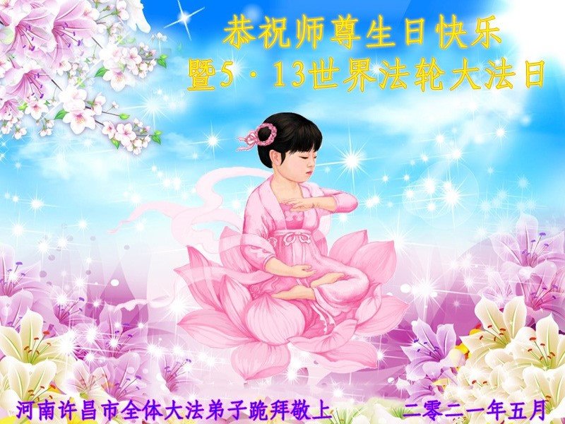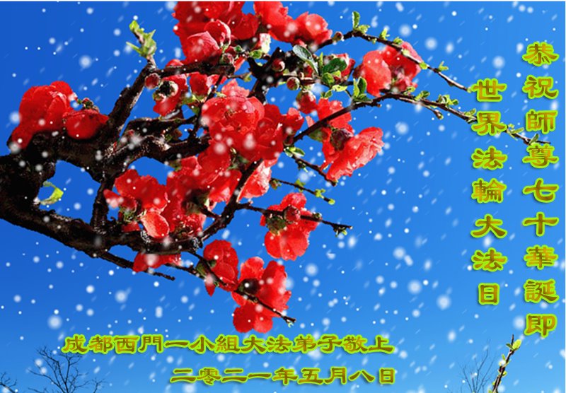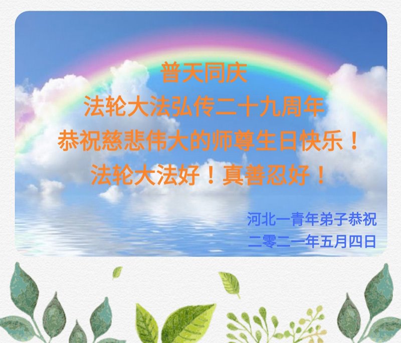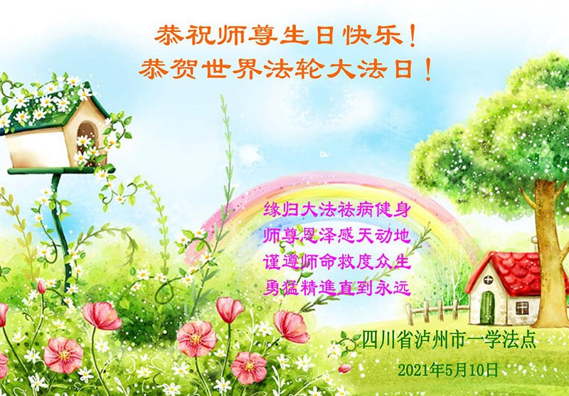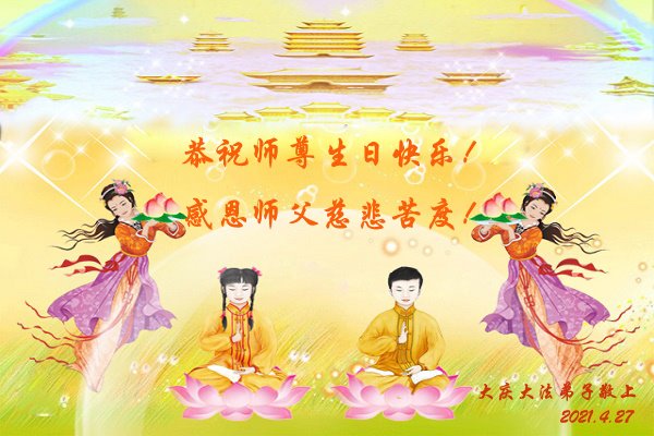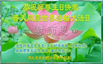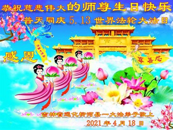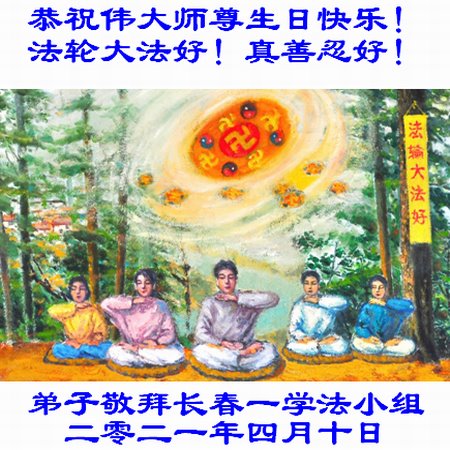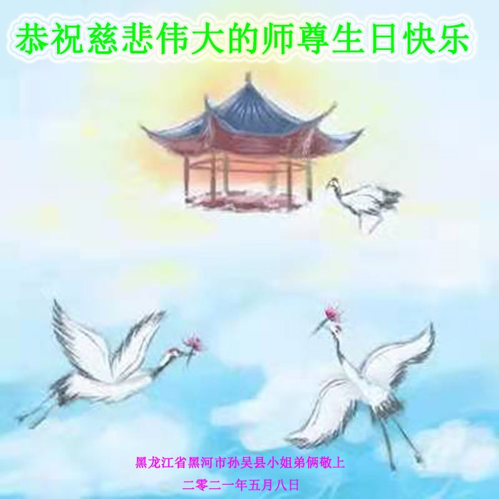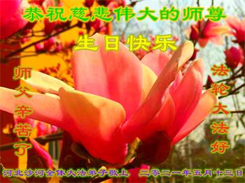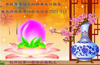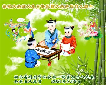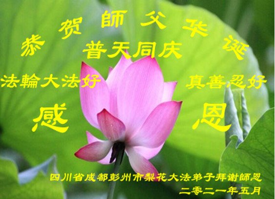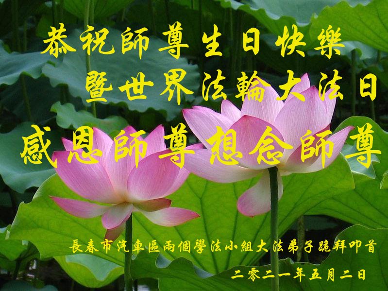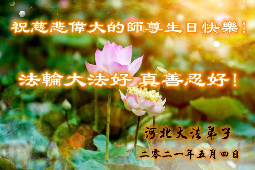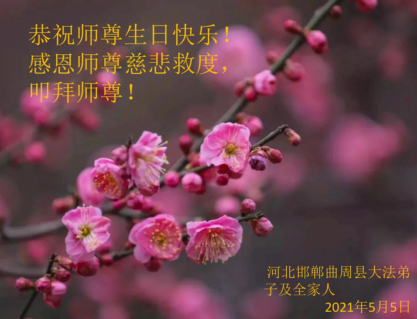 在二零二一年五一三世界法轮大法日即将到来之际,在这普天同庆同庆的时刻,湖北省孝感市安陆市一学法小组在此遥祝慈悲伟大的师尊生日快乐!我们会继续做好助师正法,救度众生的事,谢谢师尊。