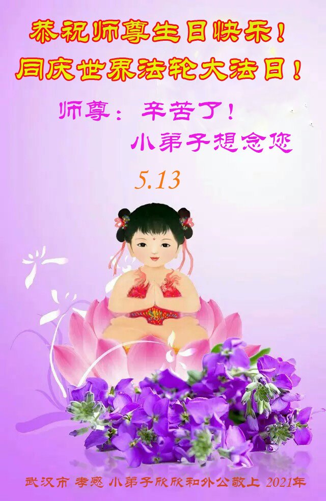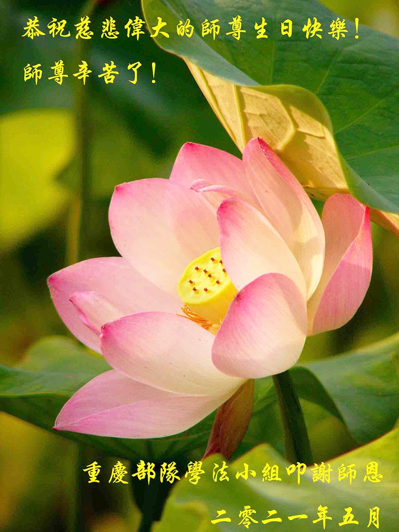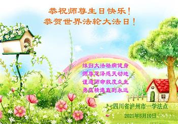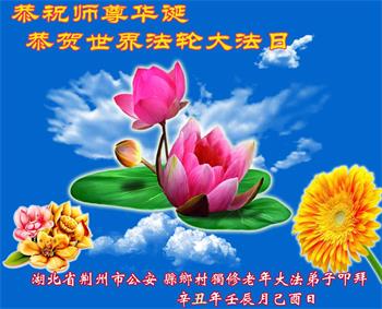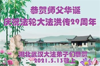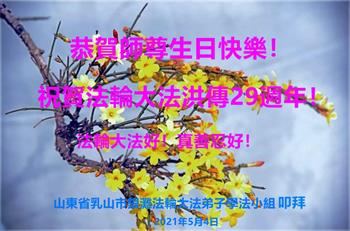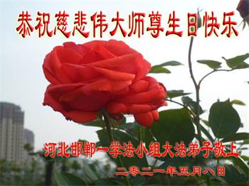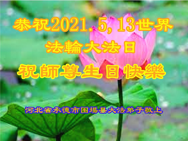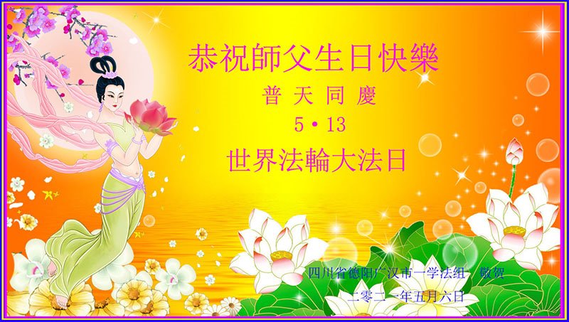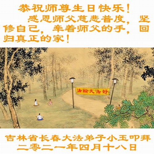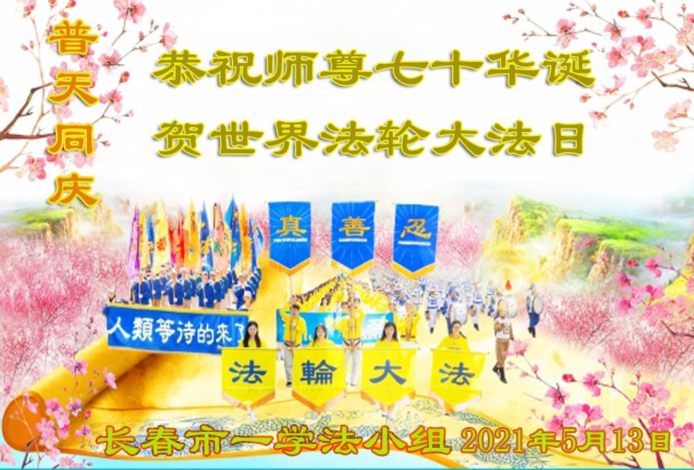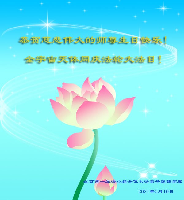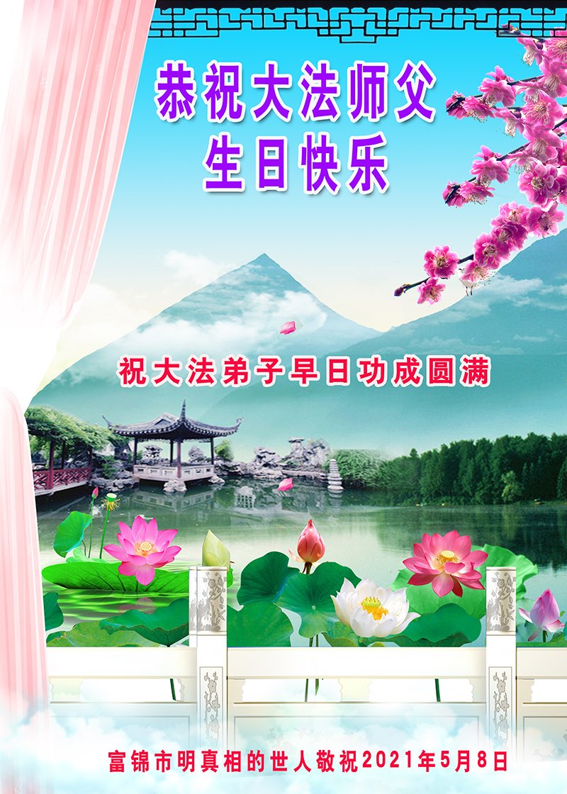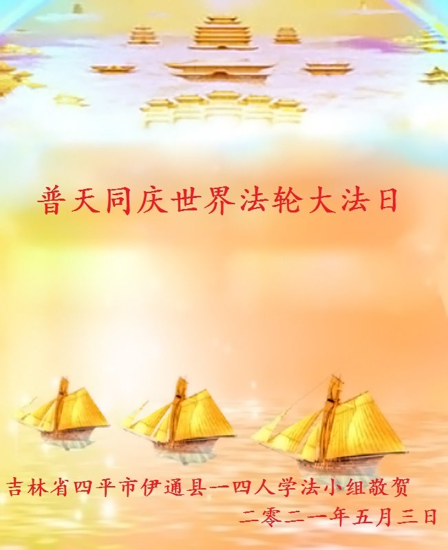 在二零二一年五一三世界法轮大法日即将到来之际,在这普天同庆同庆的时刻,湖北省孝感市安陆市一学法小组在此遥祝慈悲伟大的师尊生日快乐!我们会继续做好助师正法,救度众生的事,谢谢师尊。