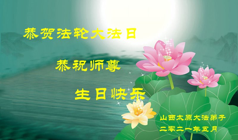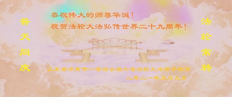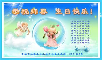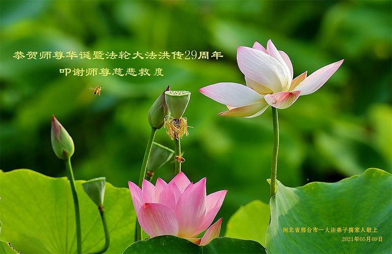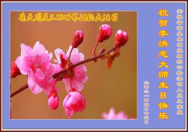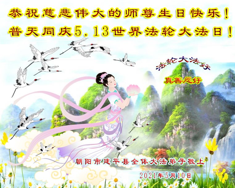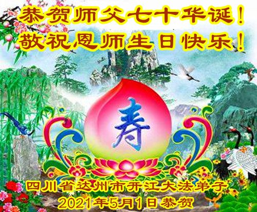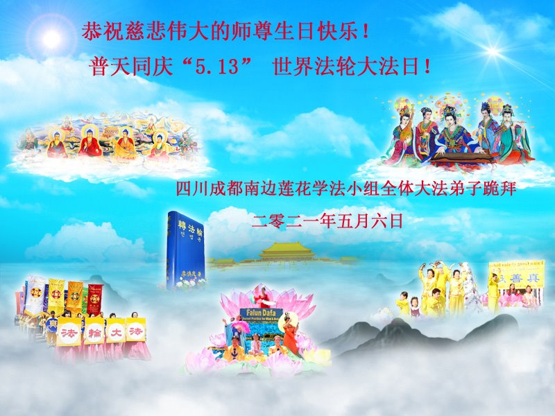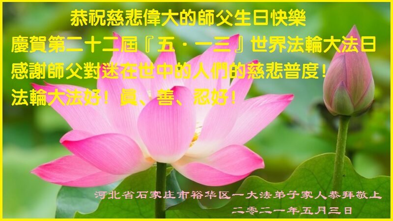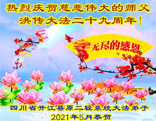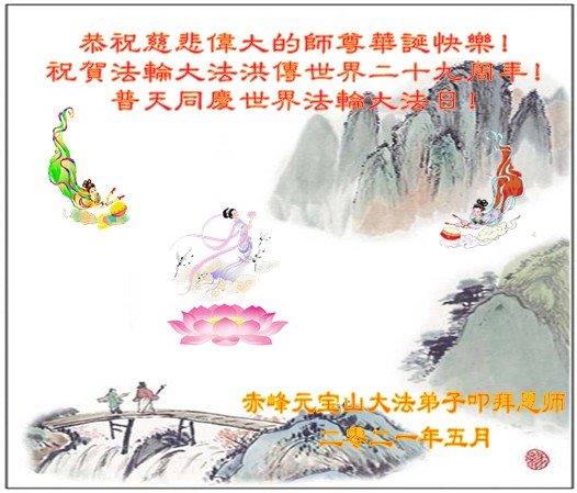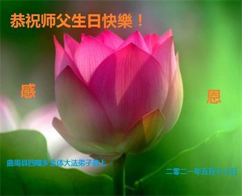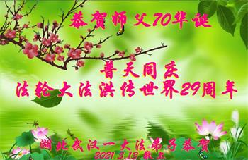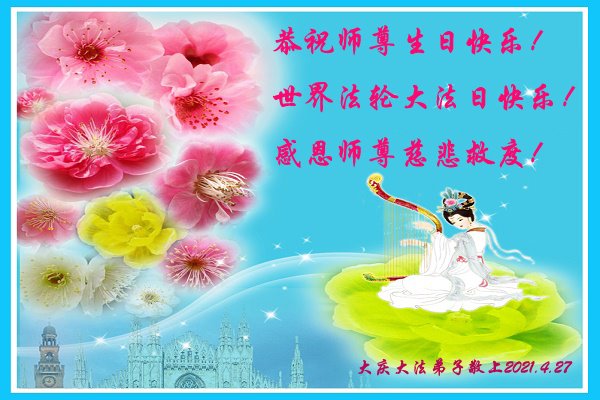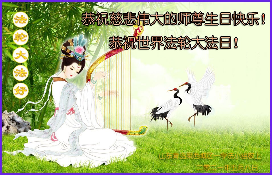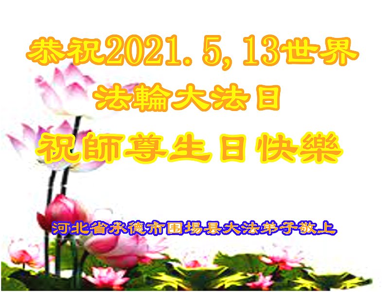 在二零二一年五一三世界法轮大法日即将到来之际,在这普天同庆同庆的时刻,湖北省孝感市安陆市一学法小组在此遥祝慈悲伟大的师尊生日快乐!我们会继续做好助师正法,救度众生的事,谢谢师尊。