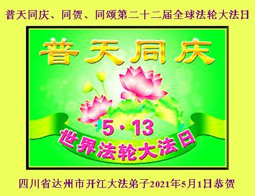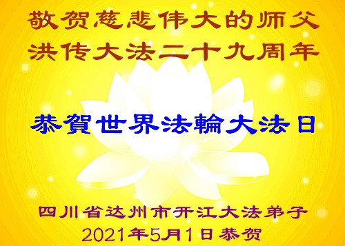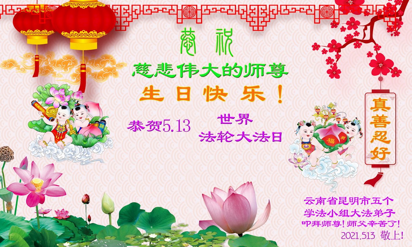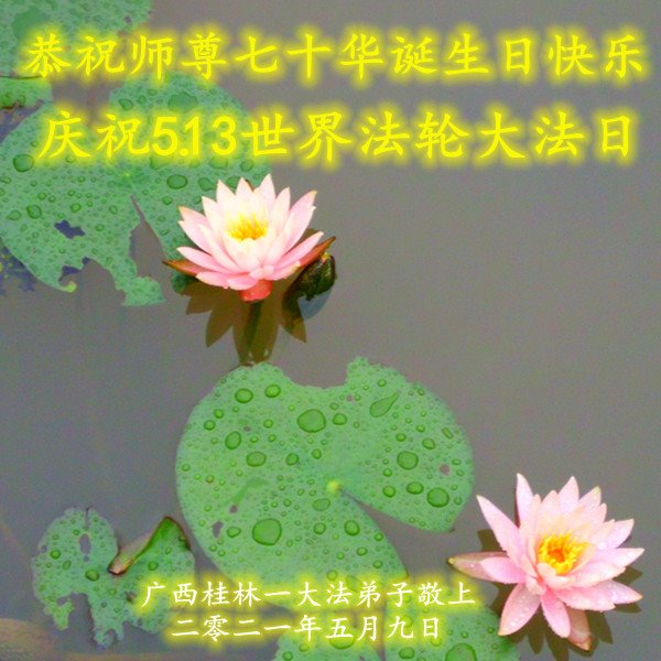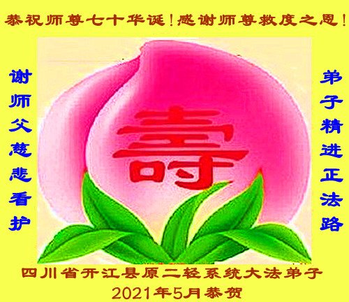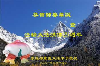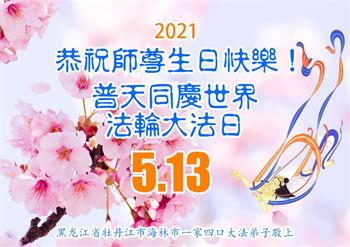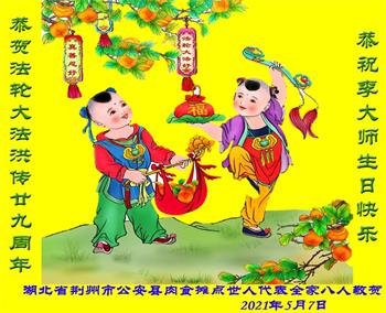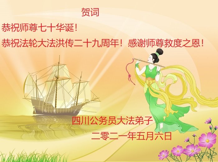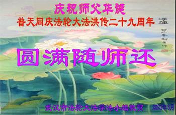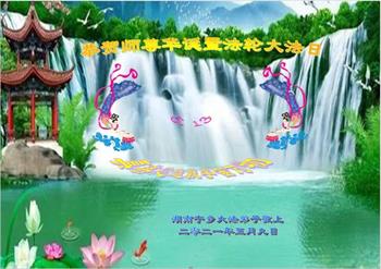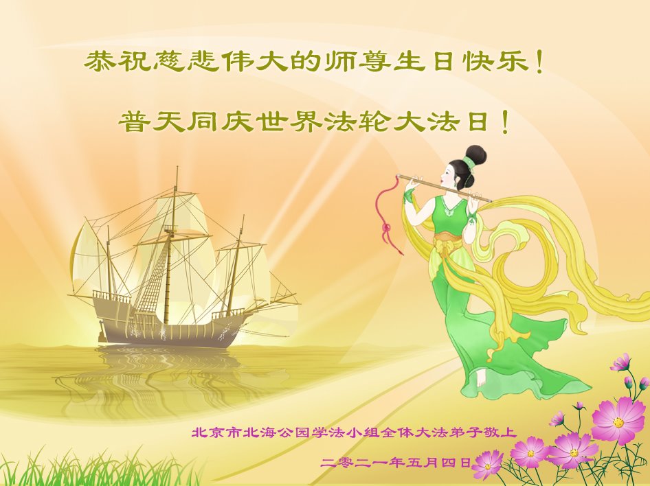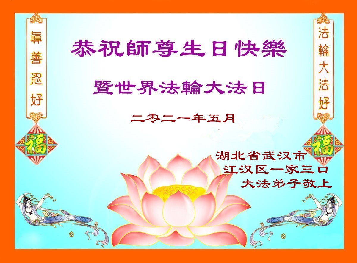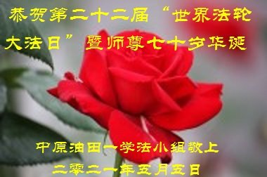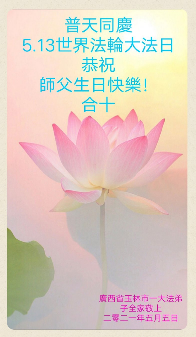 在二零二一年五一三世界法轮大法日即将到来之际,在这普天同庆同庆的时刻,湖北省孝感市安陆市一学法小组在此遥祝慈悲伟大的师尊生日快乐!我们会继续做好助师正法,救度众生的事,谢谢师尊。