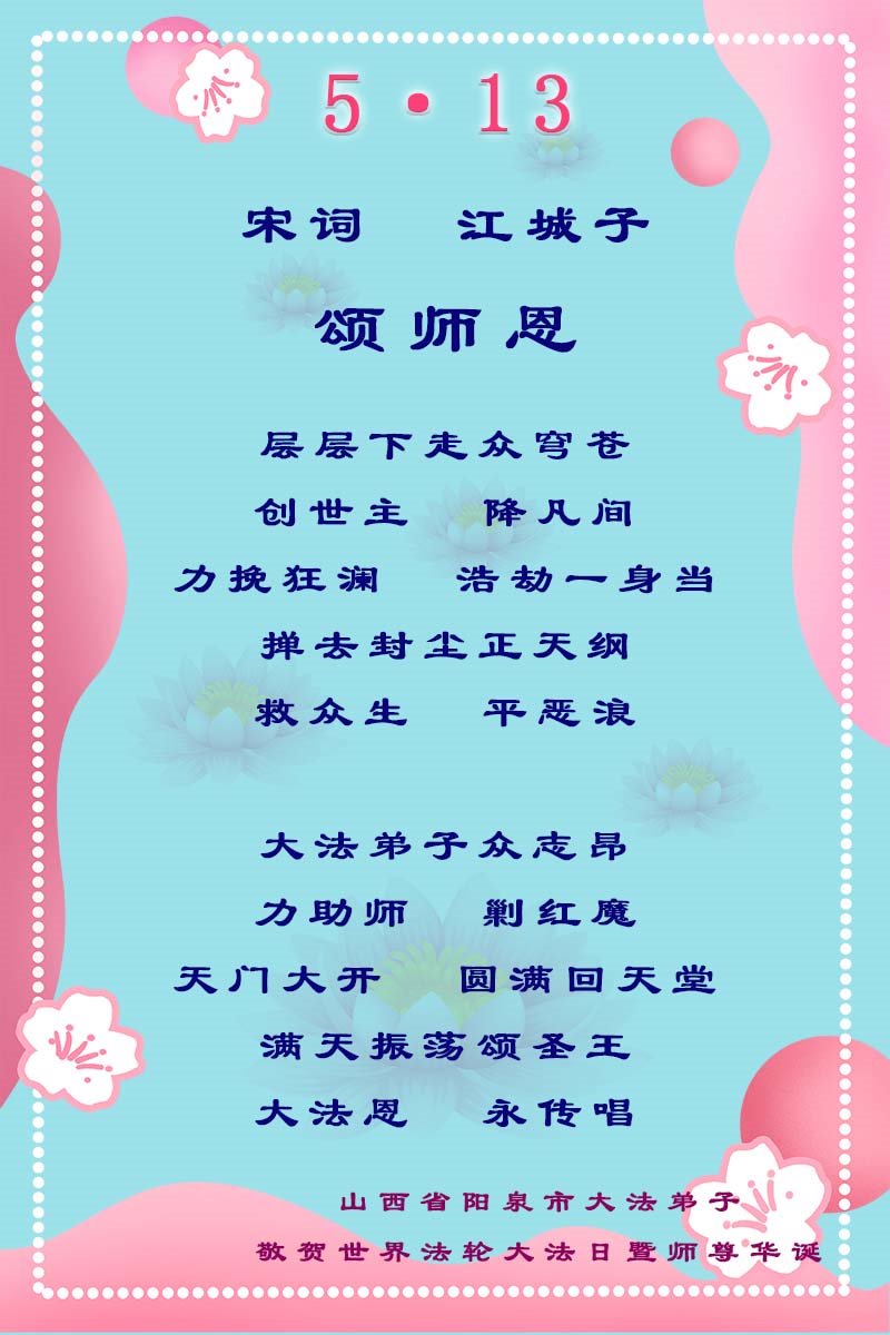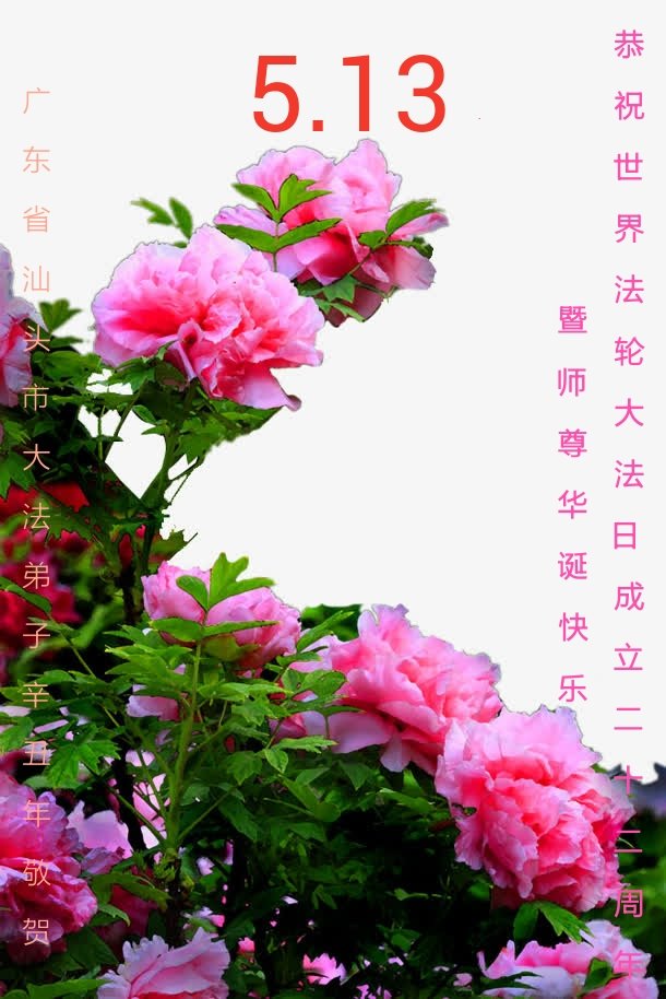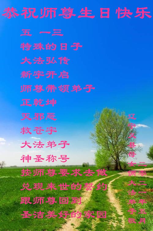 五·一三普天同祝同贺,师尊传法度众生,弟子须精進再精進,证实法讲真相救众生,放下执着放下人心名利情,莫懈怠莫安逸莫消极,反迫害不迷途,做好三件事,兑现誓约。