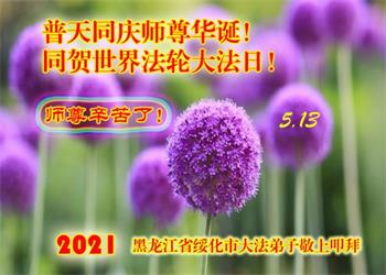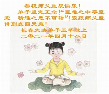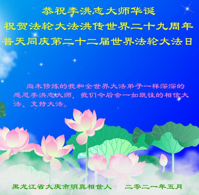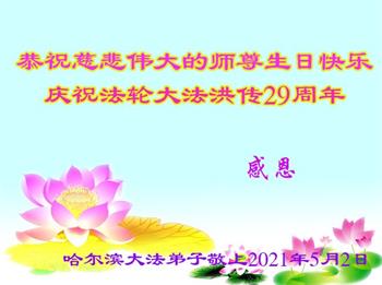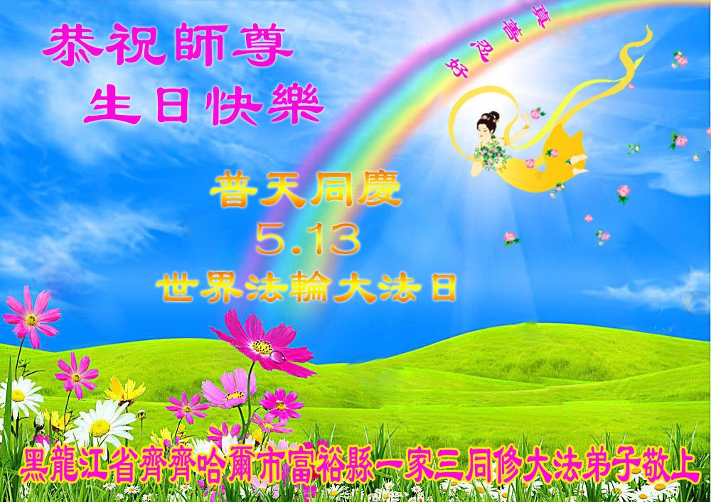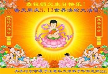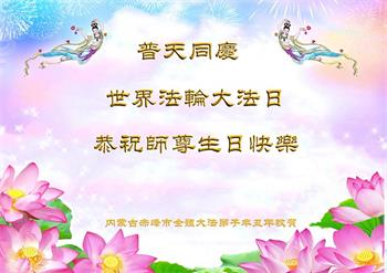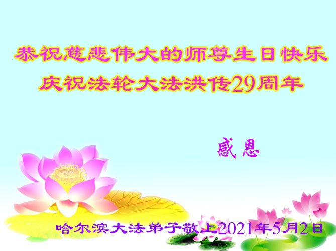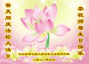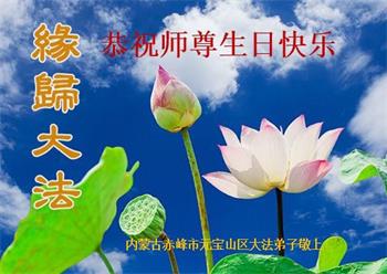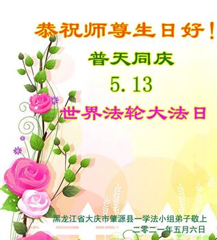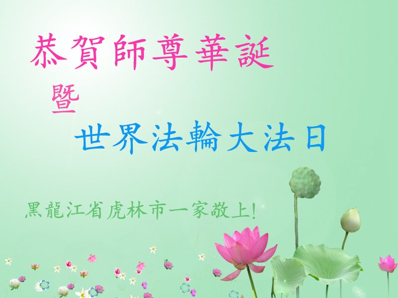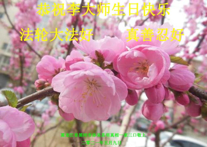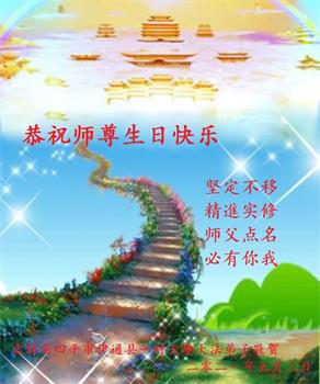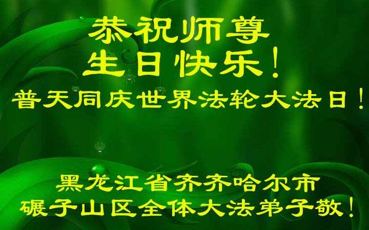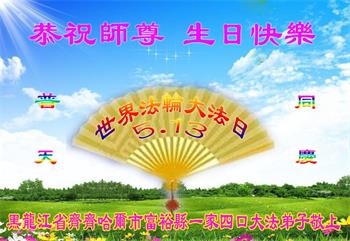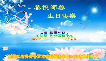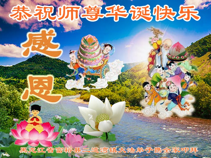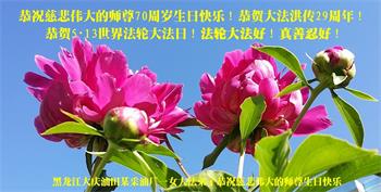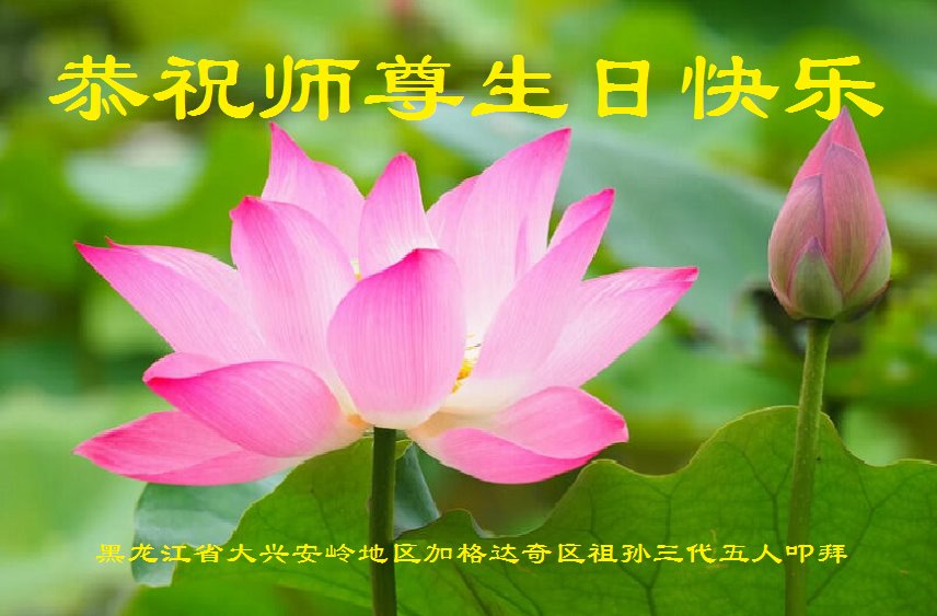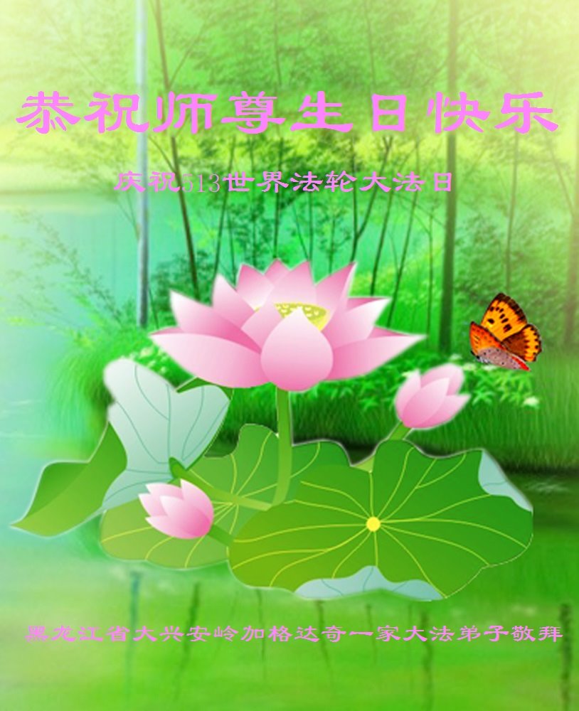 黑龙江大兴安岭老年大法弟子学法小组写道:“我们都没有见过师父,在师父华诞来临之际,我们都非常想念师父,只能远隔重洋遥祝慈悲伟大的师父生日快乐!在这末劫最后时期,我们要更加勇猛精進。”
