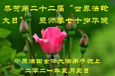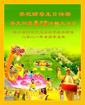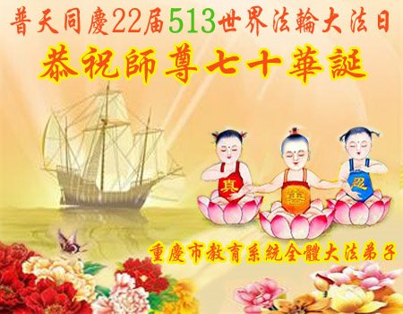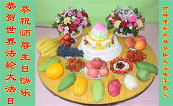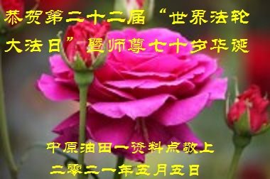欢天喜地庆师尊七十岁华诞!载歌载舞贺世界法轮大法日!回顾二十二年正法修炼路,魔难重重,惊心动魄。师尊力挽狂澜,破迷导航,救苍宇于危难中。弟子深感法轮大法的珍贵,这是人类得救的唯一希望。藉五月十三日这殊胜的节日,弟子们向慈悲伟大的师尊叩首、跪拜!
