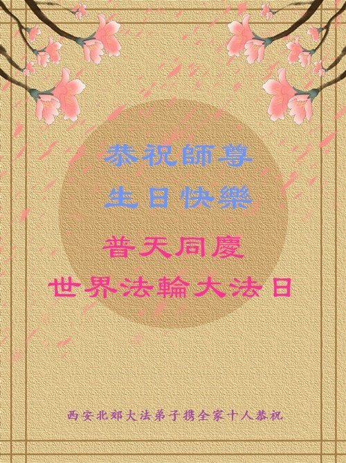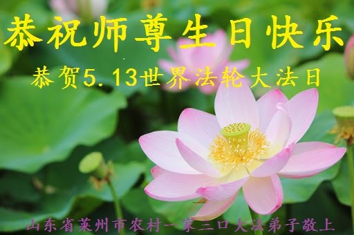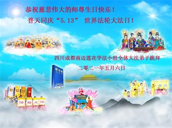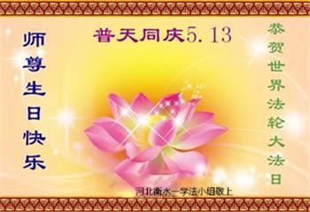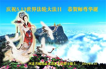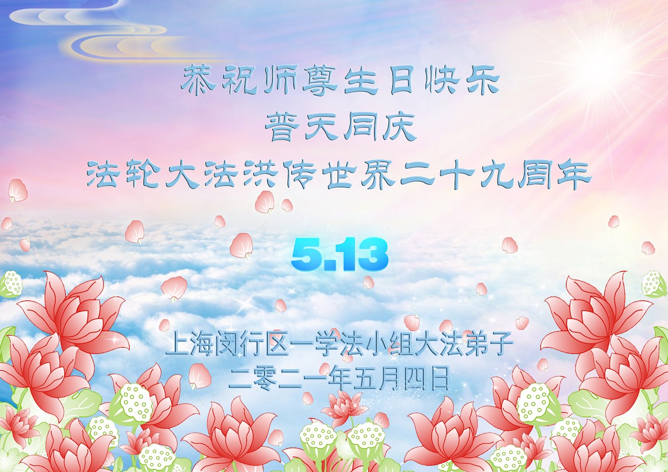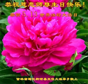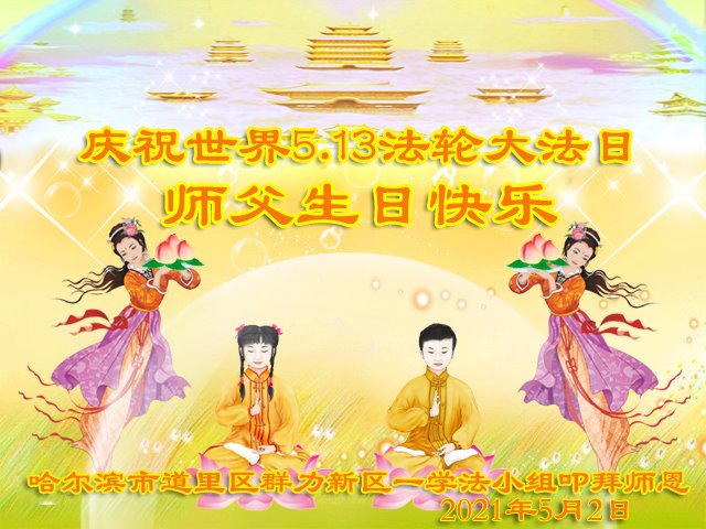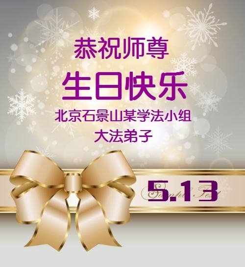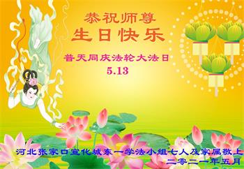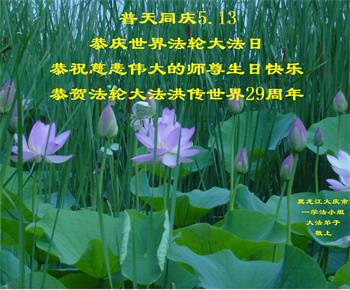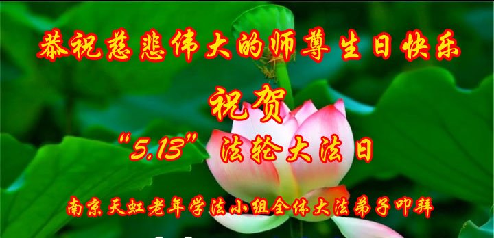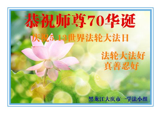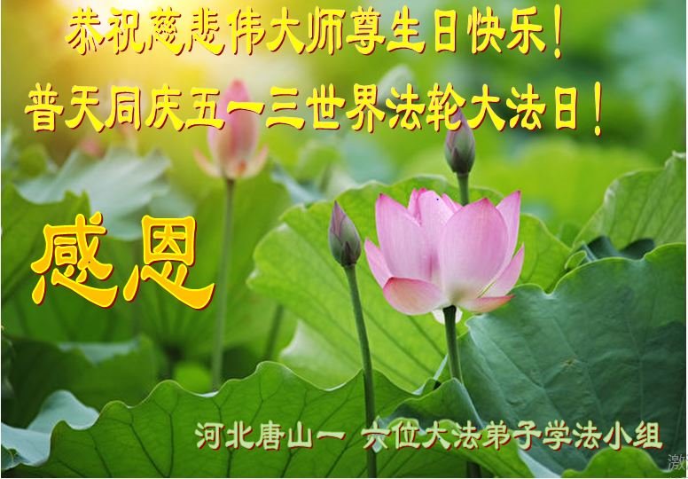 5月13日,是法轮大法日也是师父的生日,我们天津市西青区学法小组六位大法弟子,恭祝师父生日快乐!我们会自始至终做好师父交代的三件事,不忘自己的使命,责任,在学好法,发好正念的基础上,讲清真相多救人,圆圆满满的跟师父回家。