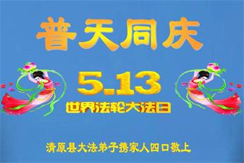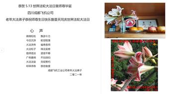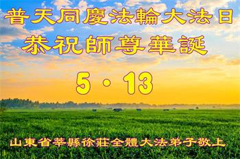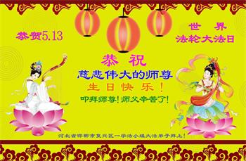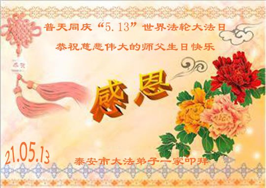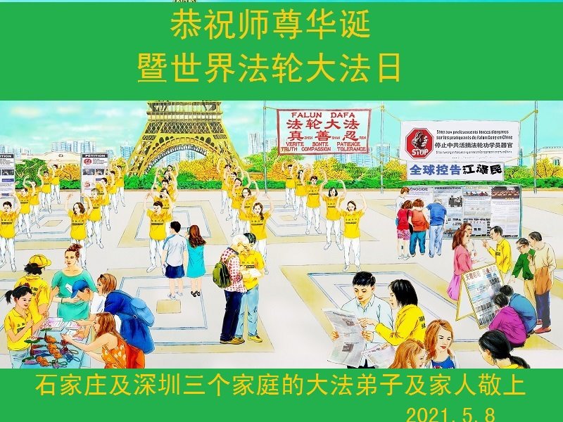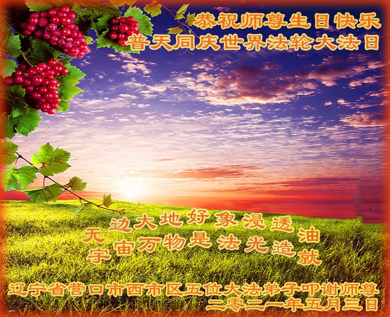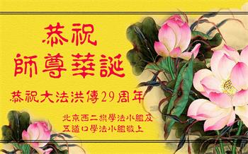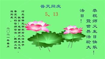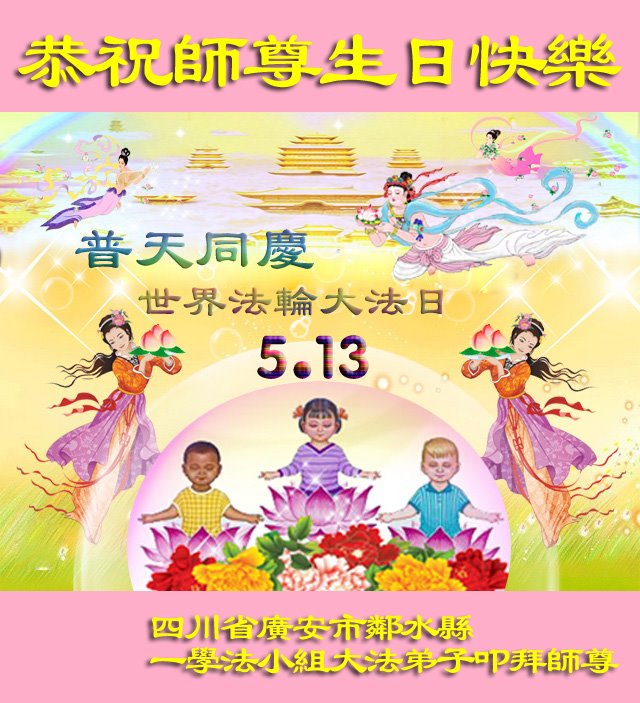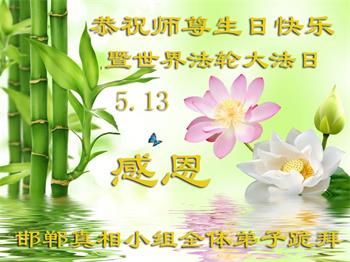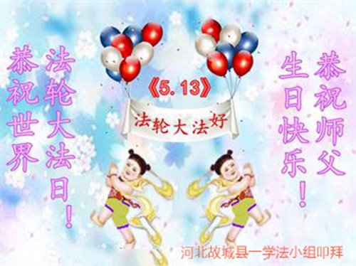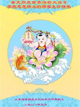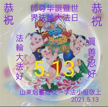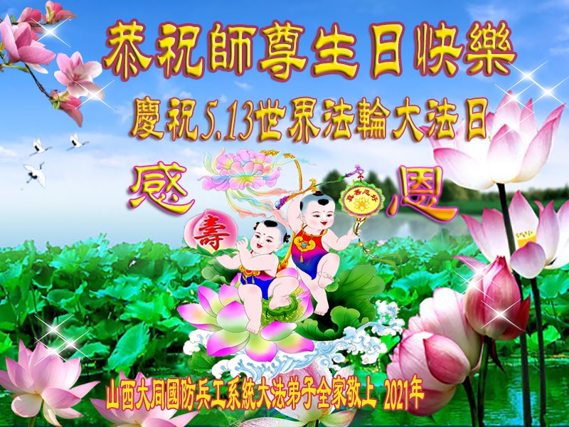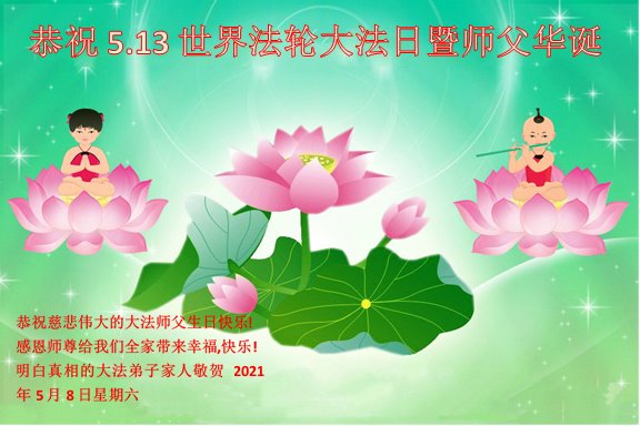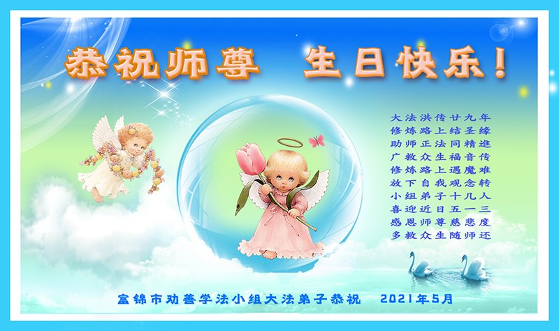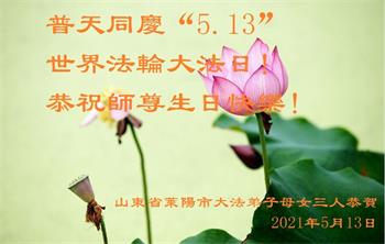 5月13日,是法轮大法日也是师父的生日,我们天津市西青区学法小组六位大法弟子,恭祝师父生日快乐!我们会自始至终做好师父交代的三件事,不忘自己的使命,责任,在学好法,发好正念的基础上,讲清真相多救人,圆圆满满的跟师父回家。