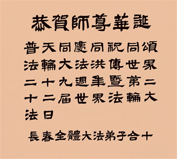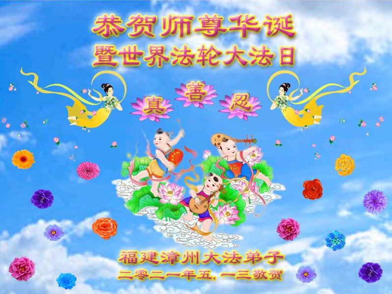 福建漳州大法弟子恭贺师尊七十华诞!普天同庆第二十二届世界法轮大法日!