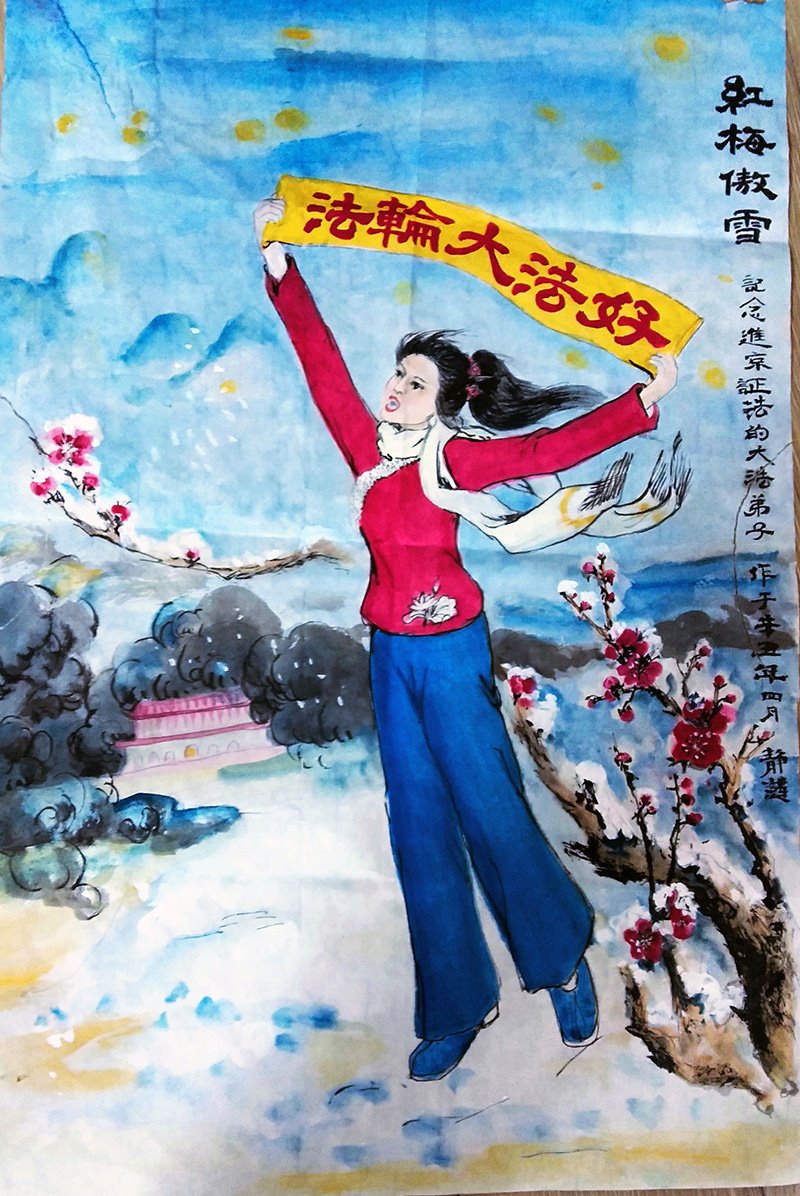 (图注:这幅画是一位老年大法弟子用了数月之久,画出的水墨画,特此敬献师尊)