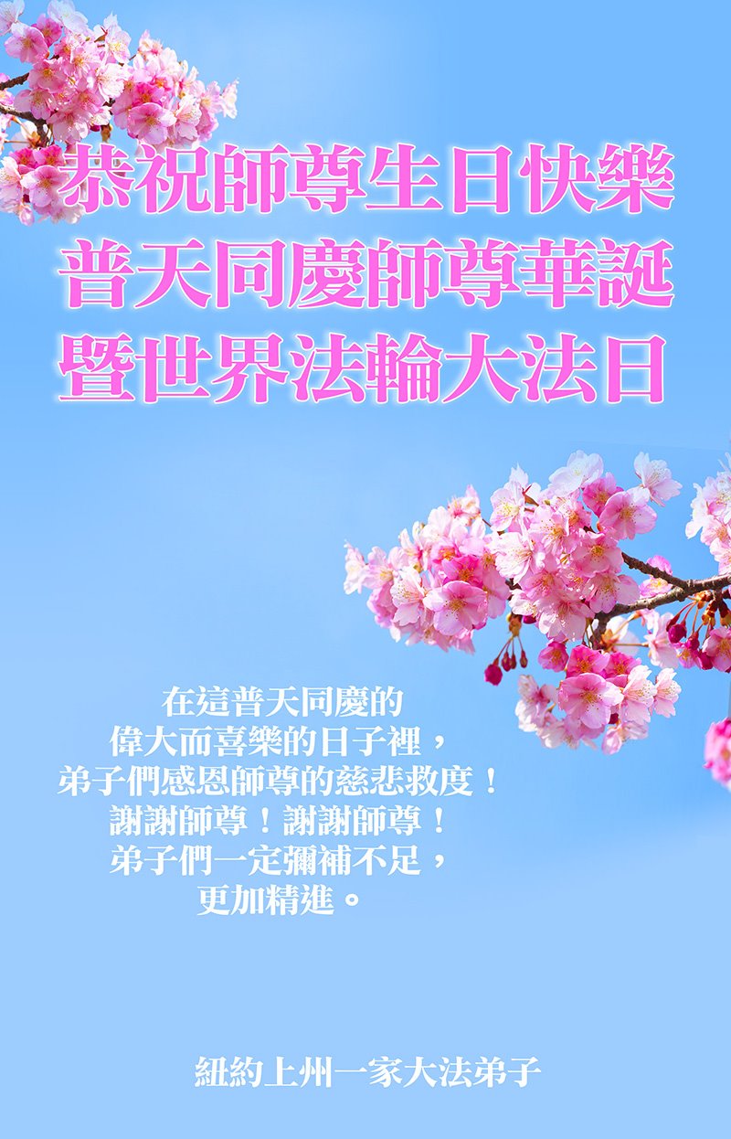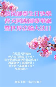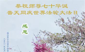在普天同庆世界法轮大法日来临之际,纽约大法弟子恭祝慈悲伟大的师尊生日快乐!