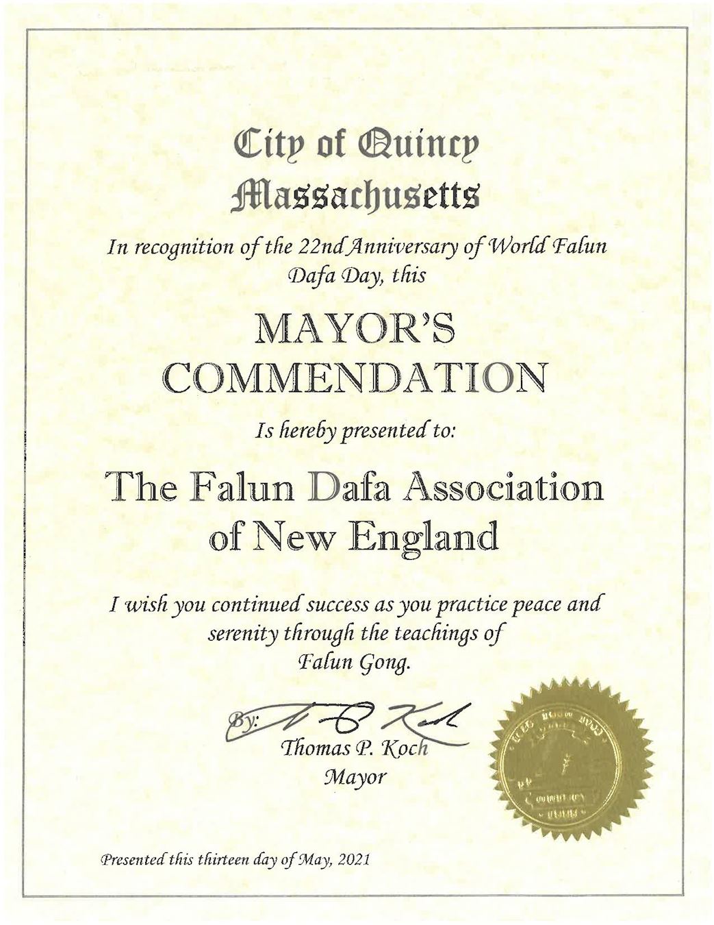【明慧网二零二一年五月十五日】二零二一年五月十三日,是第二十二届世界法轮大法日,也是大法洪传世界二十九周年,更是慈悲伟大的师尊华诞。在这普天同庆的日子,纽约联邦国会议员、纽约州参议员、纽约州众议员、纽约市议员和多个市镇长官纷纷发来褒奖贺信,感谢大法福泽社区。
