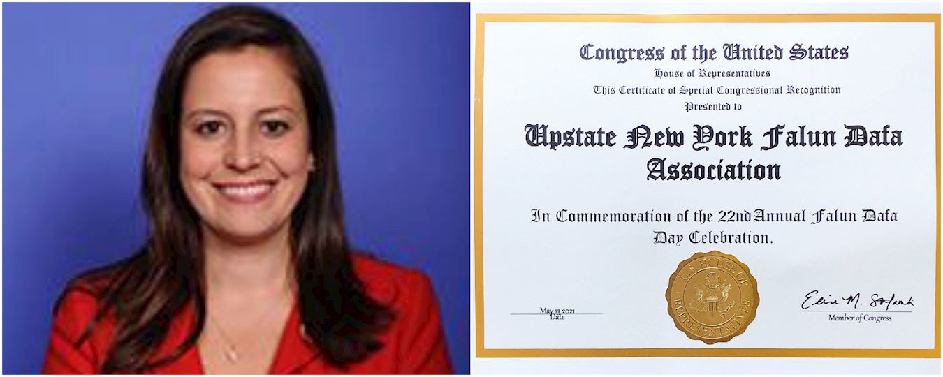 ![]() 图7:刚刚胜选为美国国会众议院共和党大会主席的纽约第二十一选区女议员埃莉斯·斯特法尼克(Elise Stefanik)向纽约上州法轮大法学会发来荣誉证书,祝贺第二十二届大法日的庆祝。 |