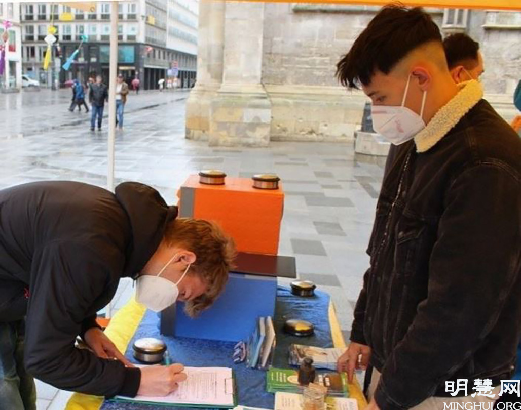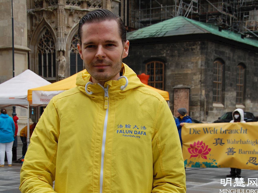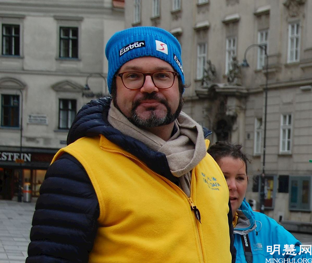 奥地利法轮大法学会的王先生表示:师父带领我们一步一步走过来,指导我们修炼,帮助我们净化身体。法轮大法从中国那么严厉的国家传法开始,现在洪传到全世界一百多个国家和地区。现在疫情期间,很多人困境中都在寻找和思考。当法轮功学员讲真相时,世人都是在认真听。真、善、忍是现今世界真正需要的。