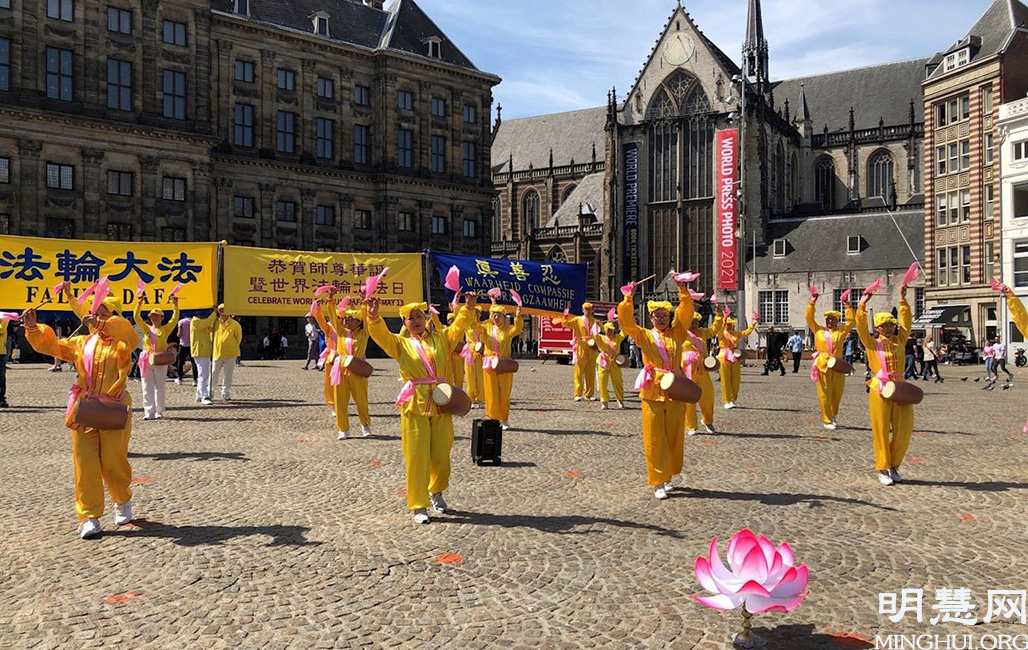 ![]() 图1~2:荷兰法轮功学员在首都阿姆斯特丹的达姆广场举行庆祝世界法轮大法日的活动。 |