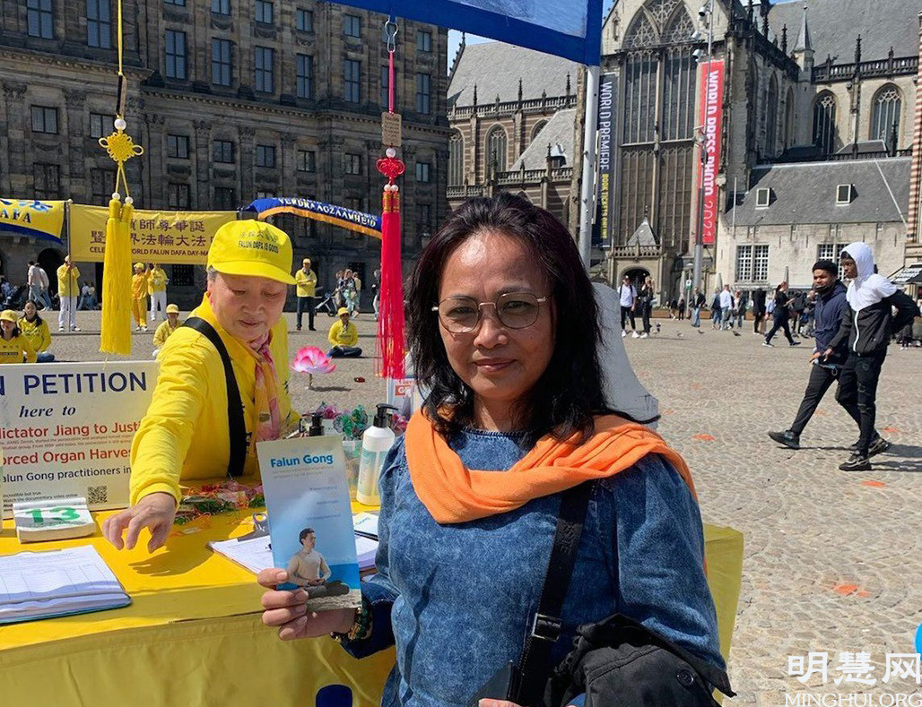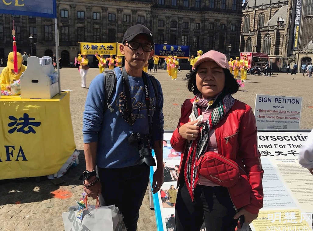 帮巴姆邦(Bambang)先生是一位网络电台记者,他表示:“以前我居住在印尼的时候,就知道法轮功。现在已经在荷兰生活了七年,当我路过达姆广场的时候,经常看到你们的(弘法)展位。”他指着横幅上面的三个字说:“看到真、善、忍这三个字,觉得很好很重要,是对自己的提醒,做人要做到真善忍。我们需要对别人真实,需要尊重他人,内心平静,如果每天都这样做,就会成为你的习惯。”
