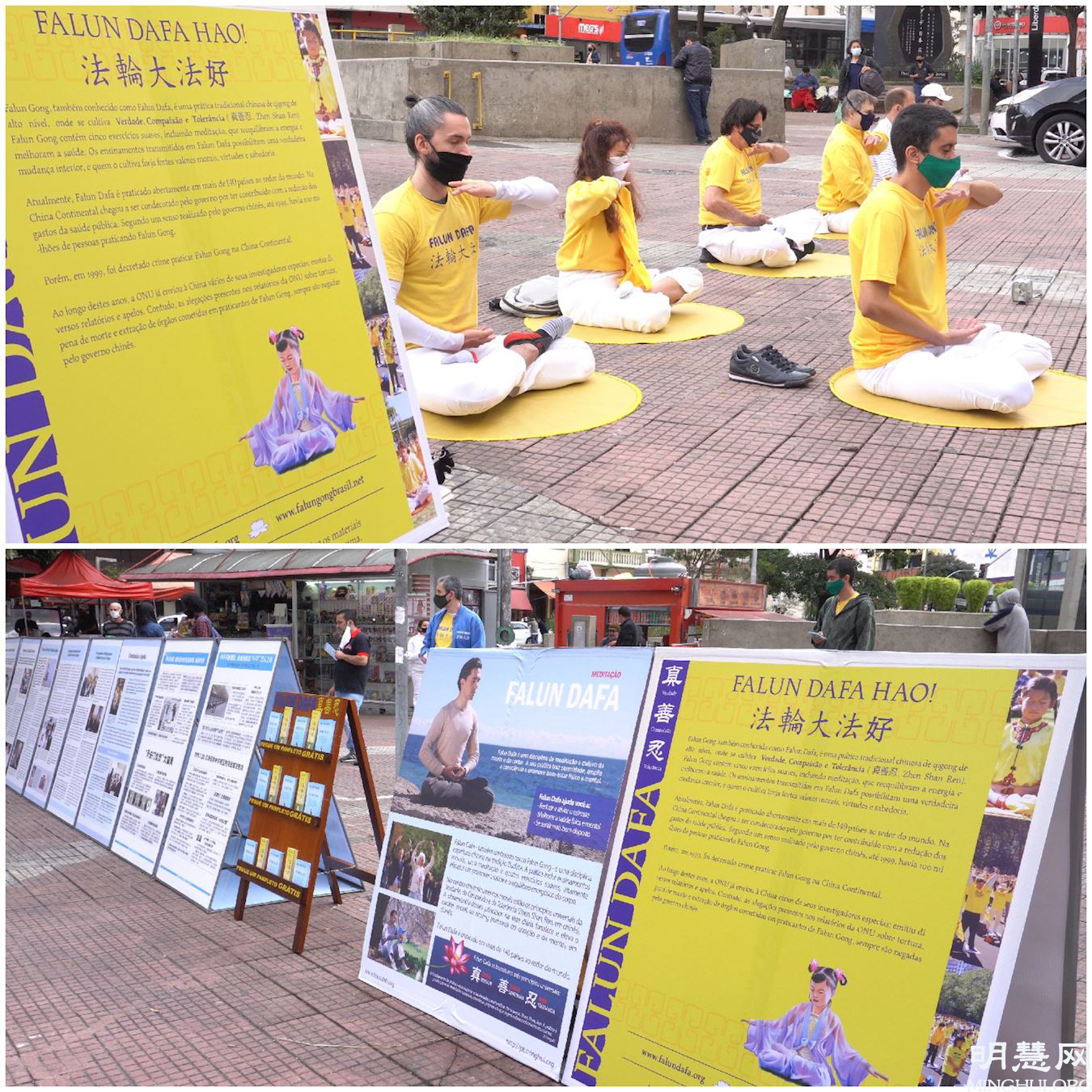![]() 图1:二零二一年五月十三日,巴西法轮功学员在旅游景点——东方街自由区(liberdade)广场,演示功法和摆放真相图片展庆祝世界法轮大法日,同时传播真相。 |