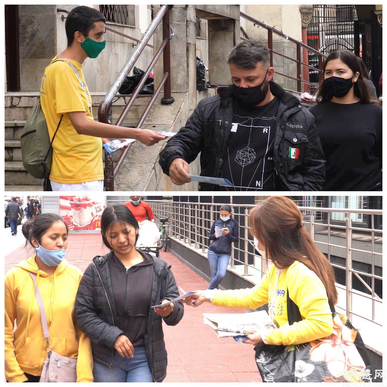 ![]() 图3:在真相花车经过的沿途,法轮功学员向市民派发法轮功的真相资料。 |