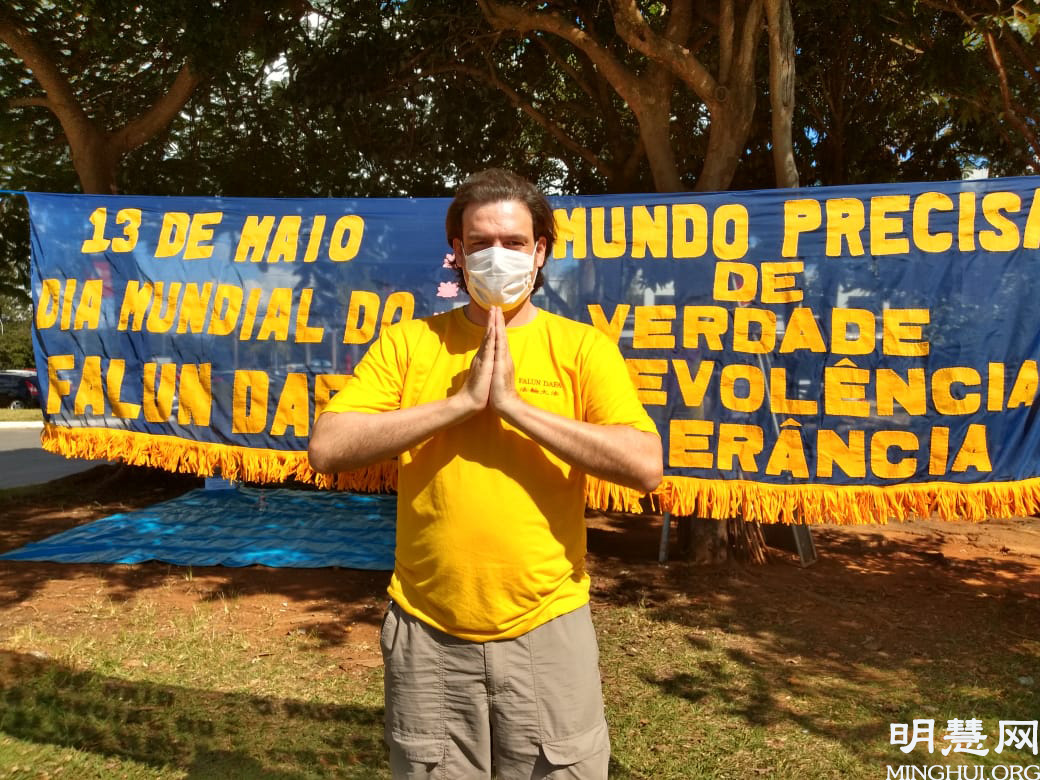 吉优谷(Diogo)于二零一七年在网上了解到法轮大法,读了《转法轮》,非常喜欢,并按着视频学习功法。两年后他来到炼功点与其他学员一起炼功。