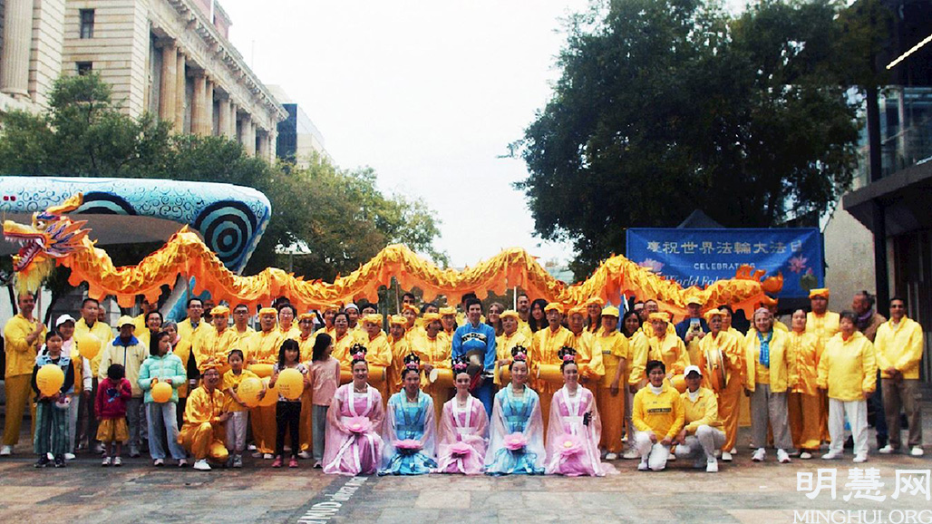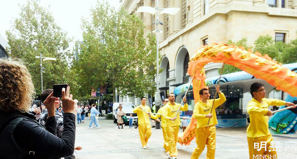 五月十六日,法轮功学员继续在西澳唐人街欢庆“世界法轮大法日”。他们展示法轮功五套功法和腰鼓队表演,广受民众欢迎。