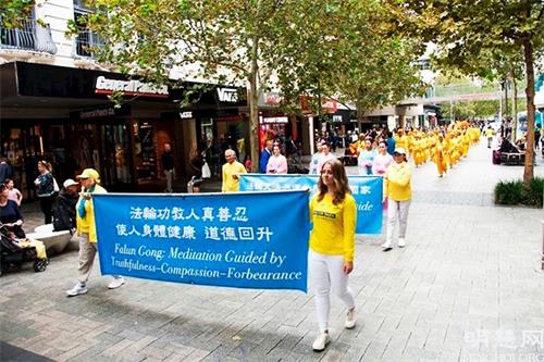 五月十五日,在西澳柏斯市中心默里街购物中心步行街(Murray Street Mall) 西澳法轮功学员举行游行、集会庆祝这个伟大的节日,展现法轮大法的美好。
