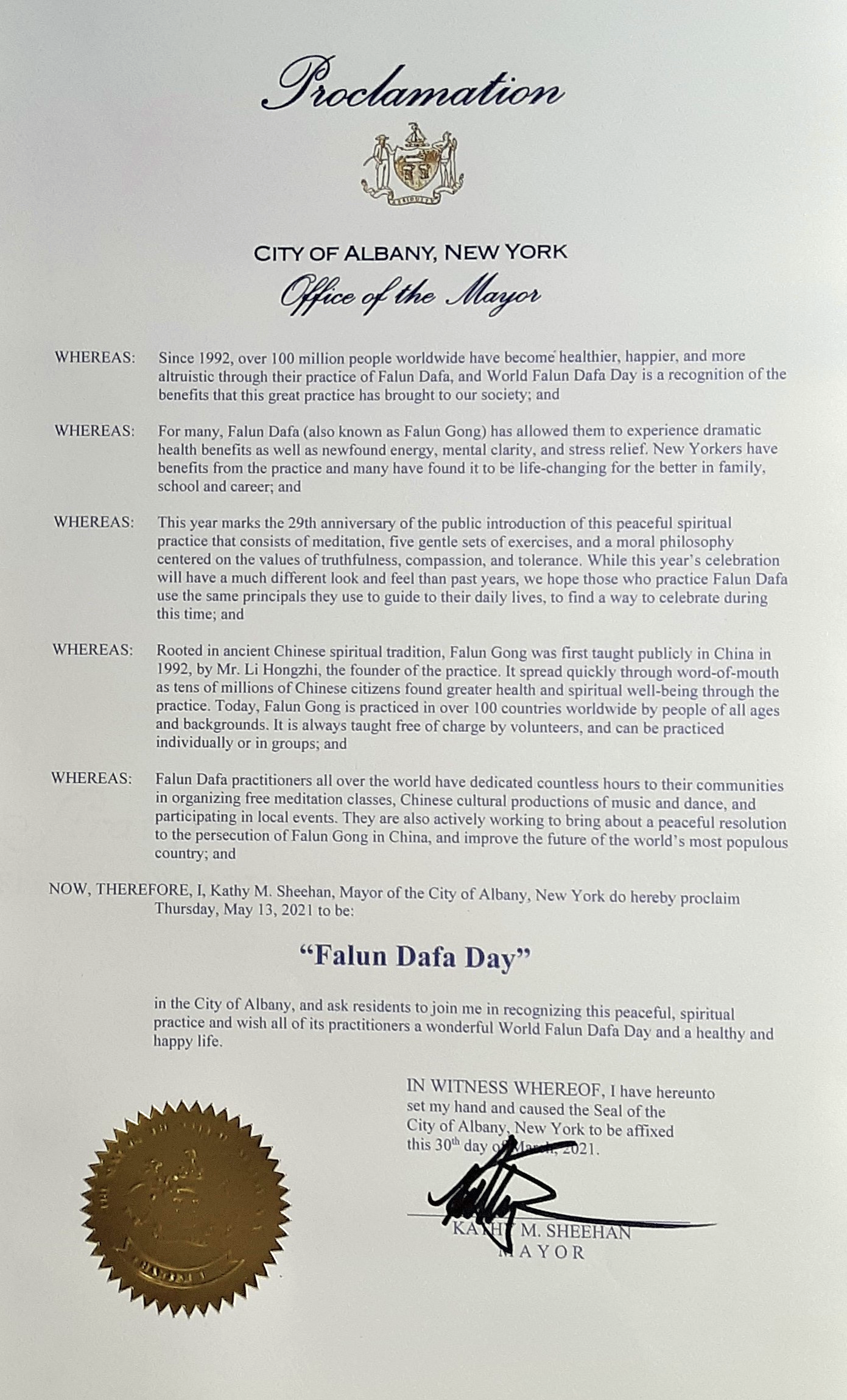 鉴此,我,施翰(Kathy M. Sheehan),纽约州奥伯尼市市长宣布二零二一年五月为奥伯尼市