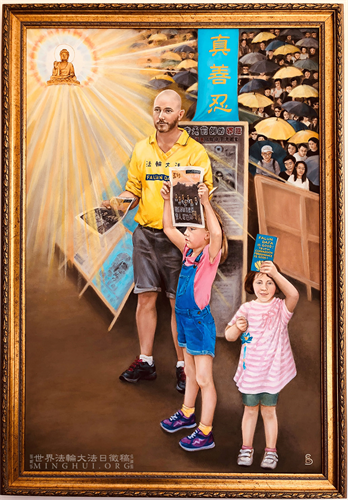 作品说明:来自澳大利亚的一位父亲和两个女儿在香港传播大法真相,师尊洪大的功在清除邪恶,人们在觉醒。