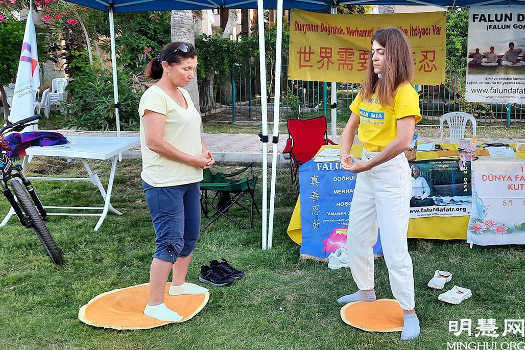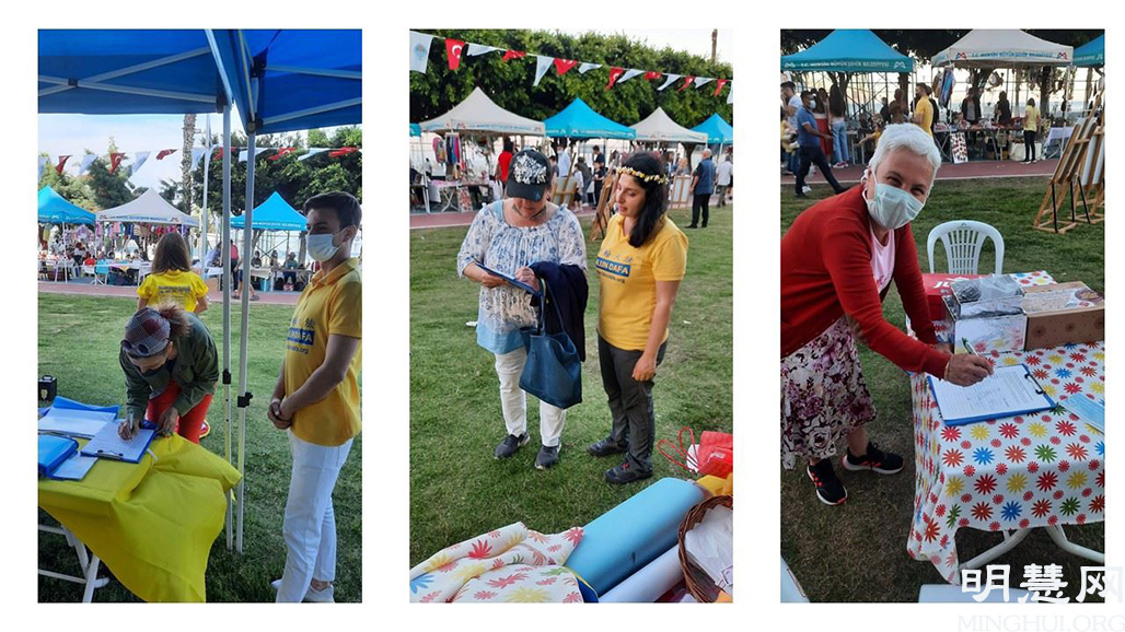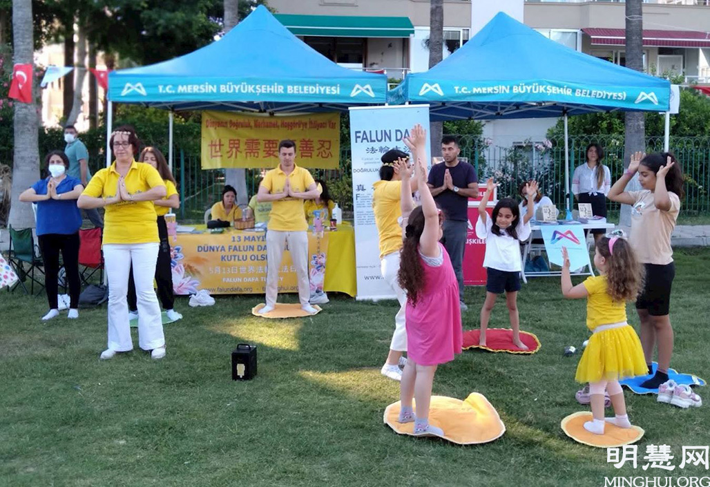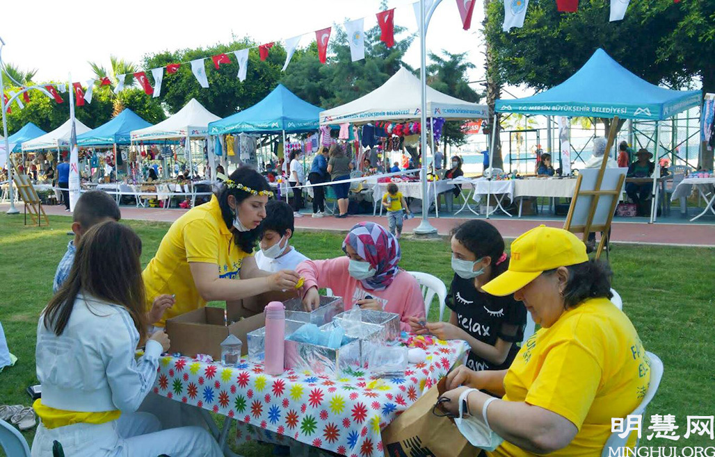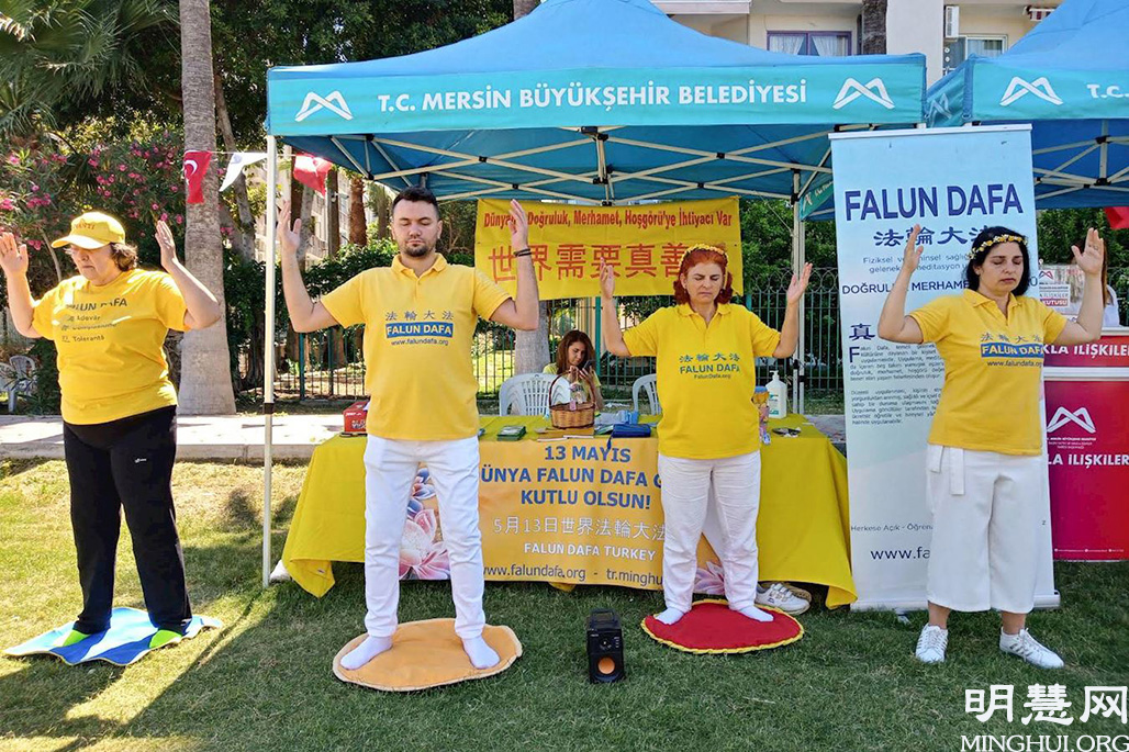 由于中共病毒疫情,土耳其政府封城二十一天。封城结束后,法轮功学员应邀参加了在梅尔辛市(Mersin City)举办的青年体育节。学员们在五天中向民众讲真相、教功,受到欢迎。
