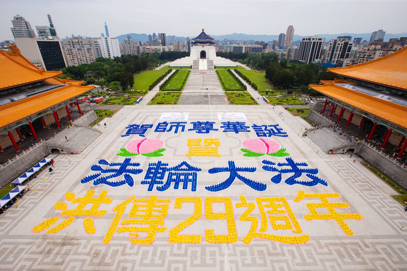 ![]() 图1:二零二一年五月一日,五千多位台湾法轮功学员在中正纪念堂的自由广场排出“贺师尊华诞暨法轮大法洪传29周年”巨型图像,庆祝李洪志先生华诞及世界法轮大法日。 |