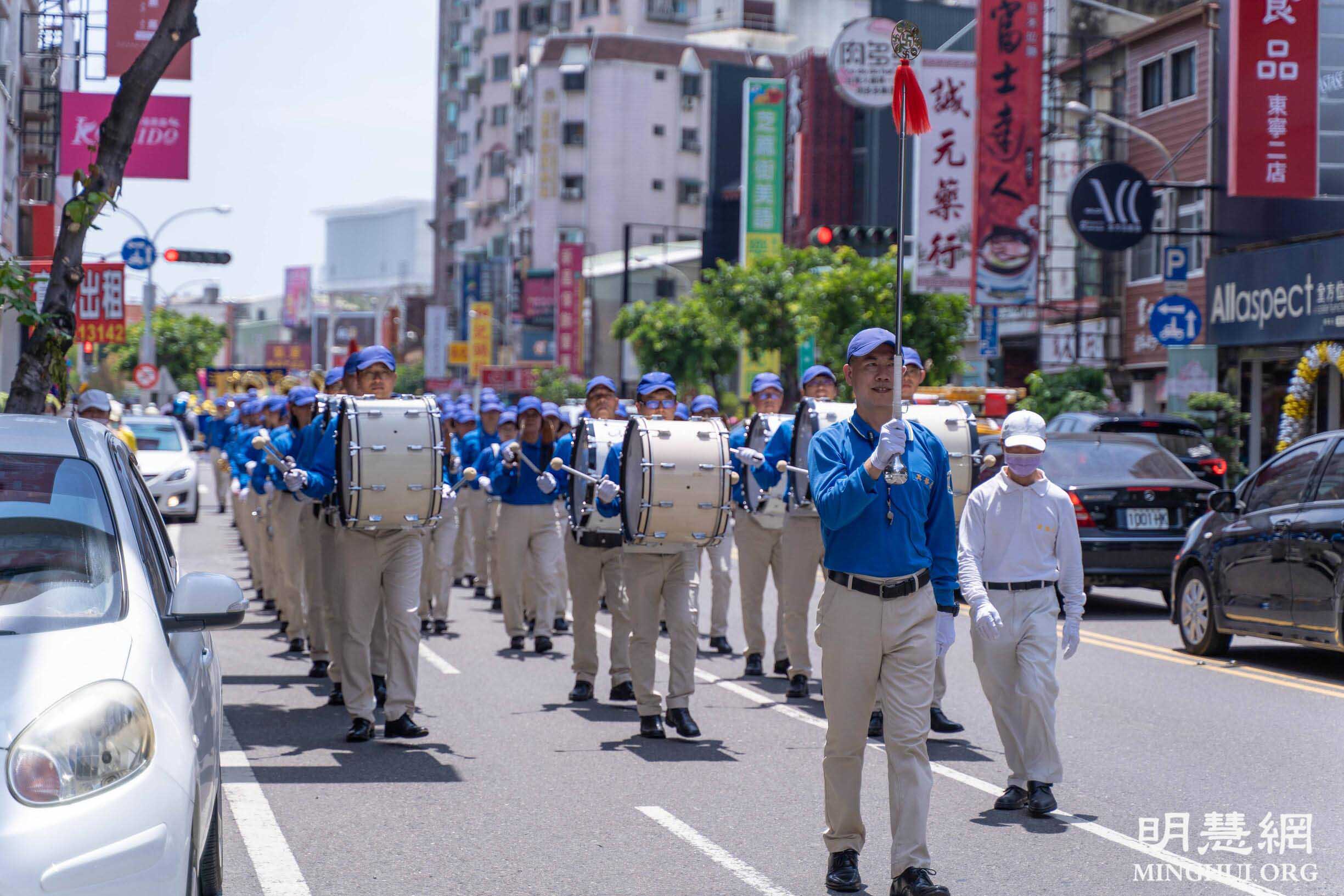 一位男士走出诊所,被鼓乐声吸引,他静静看了好一会儿。他表示,在台湾各地景点都看到大法真相,都有去了解。他相信炼法轮功对身体好,也知道,中共不等于中国,中共迫害法轮功,活摘器官。他还说:“法轮功重人权,不重金钱主义。”