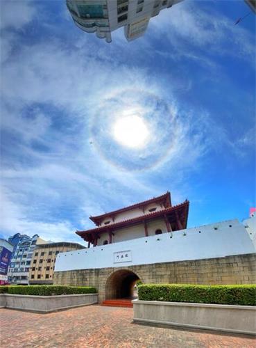 当天艳阳当空,和五月一日在台北排字时一样,又出现了七彩的日晕,非常美妙!