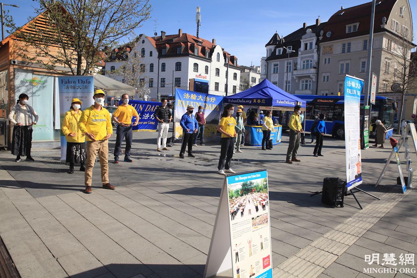 ![]() 图1:二零二一年五月五日,法轮功学员在德国慕尼黑卡尔斯广场(Karlsplatz)举办活动。 |