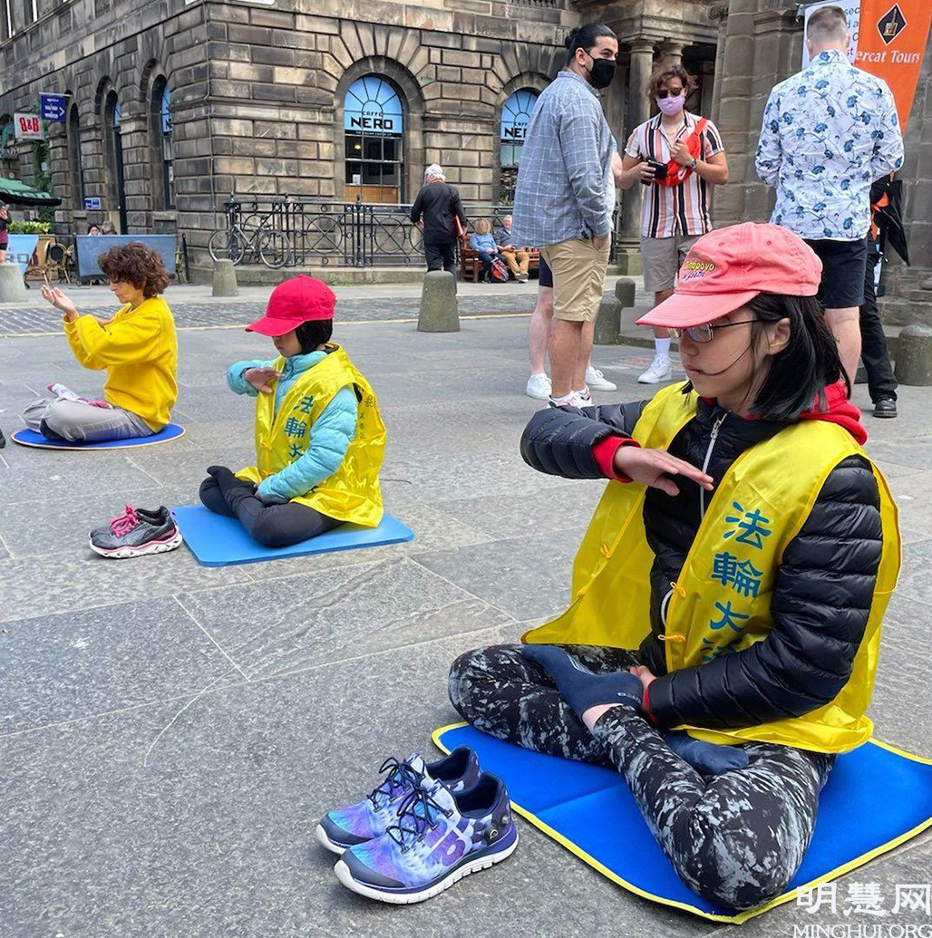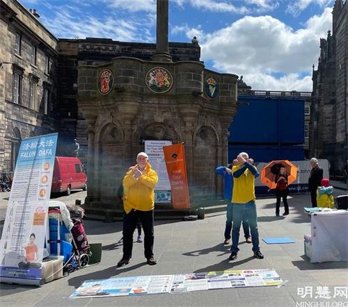 ![]() 图1~3:自苏格兰各地的多名法轮功学员也来到爱丁堡著名的皇家一英里(Royal Mile),举行弘法活动 |