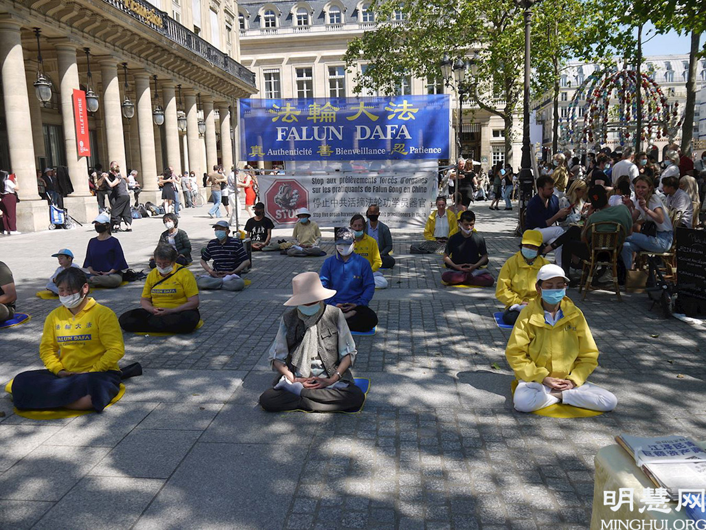 ![]() 图8:五月三十日下午,法轮功学员在巴黎一区的柯莱特广场(Place Colette)进行了炼功和讲真相的活动。 |