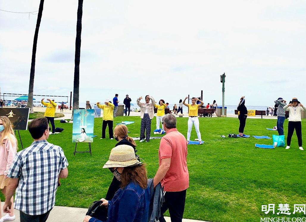 ![]() 图1~2:在刚过去的是美国阵亡将士纪念日(Memorial Day)长周未,法轮功学员来到加洲橙县的拉古娜海滩(Laguna Beach)炼功弘法、传播法轮功真相。 |