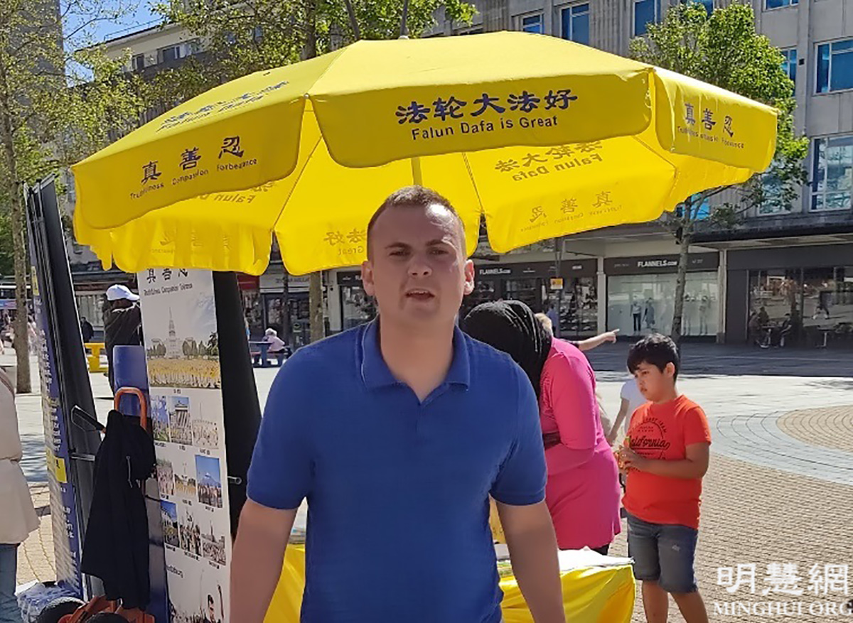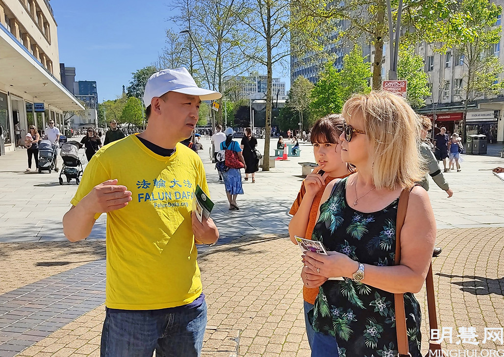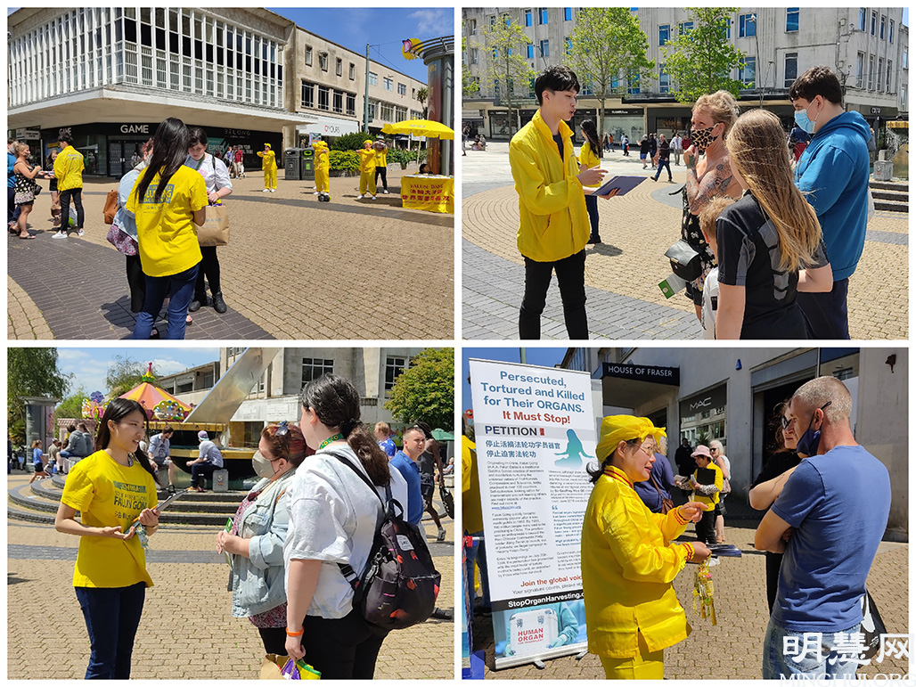 普利茅斯(Plymouth)是从外地到康沃尔的必经的一座城市,距离七国峰会地点一个多小时车程。在七国峰会期间,普利茅斯的旅馆基本被订满。学员们每天到市中心展示祥和的法轮功功法、发传单、讲真相和征签。学员刚摆好真相桌子,就有不少民众主动过来签名。