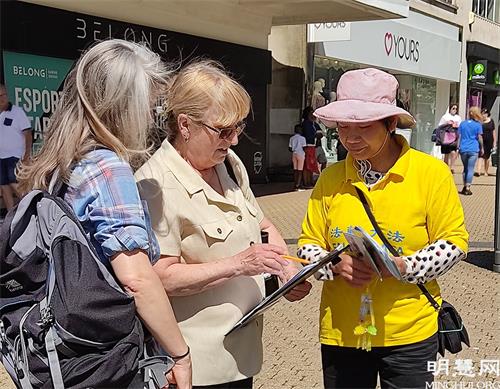 在这三天的讲真相活动当中,有不少人表示想要学炼法轮功,他们和当地学员互通了电话,彼此相约。也有几位西人,是几年前来过炼功点,但后来因疫情断了联系。这次与学员重逢,他们跟当地学员再次互留联系方式,再续前缘。