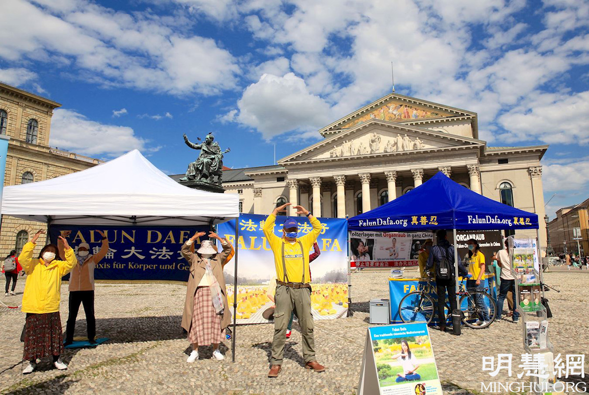 近来,由于中共病毒(武汉肺炎)疫情的缓和,人们在城里的活动又重新活跃起来。同时,旅游者也相应增多了,城市又恢复了往日的活力。法轮功学员一如既往活跃在各城区,为慕尼黑带来真、善、忍的美好。