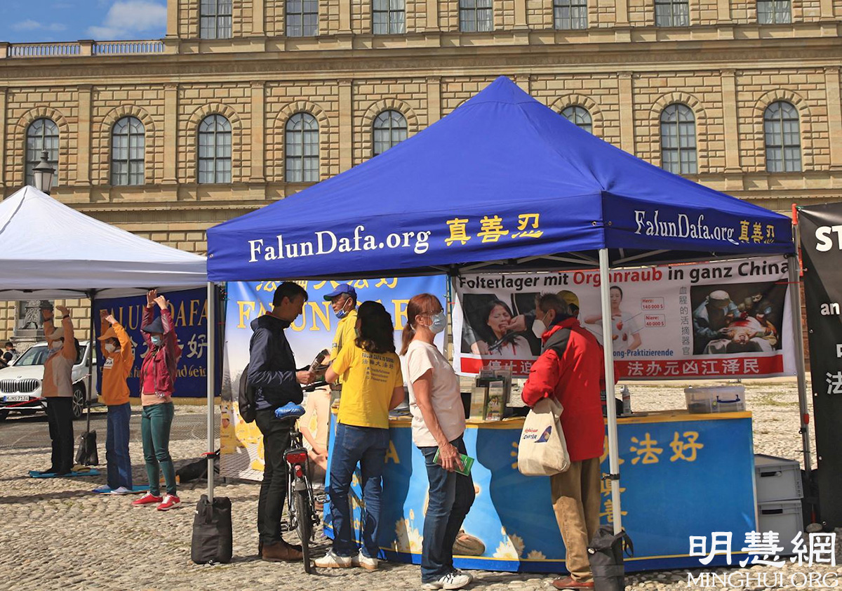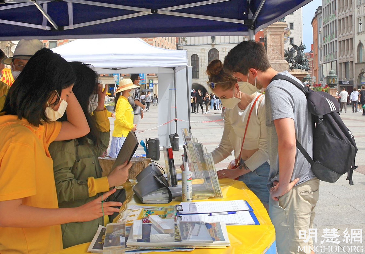 二零二一年六月五日,法轮功学员在市中心玛琳广场(Marienplatz)举办了信息日活动,很多德国民众了解了法轮功是什么、中共为什么要迫害法轮功的真相之后,纷纷签名制止中共迫害法轮功。
