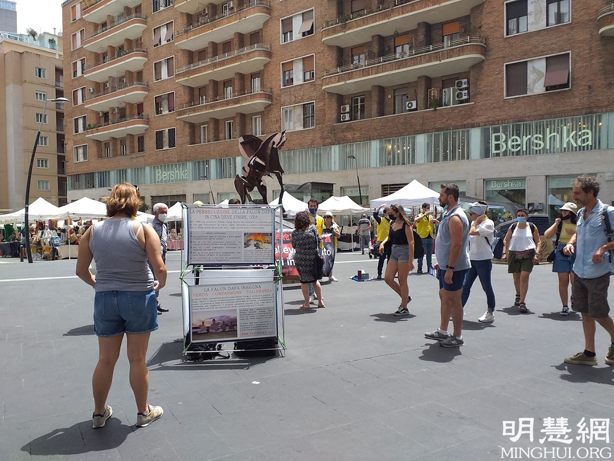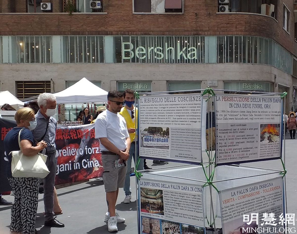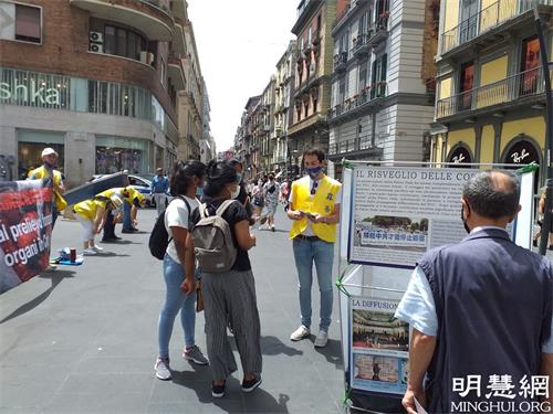 ![]() 图1:在那波里市中心最热闹的商业街-罗马大道,举行弘法讲真相活动 |