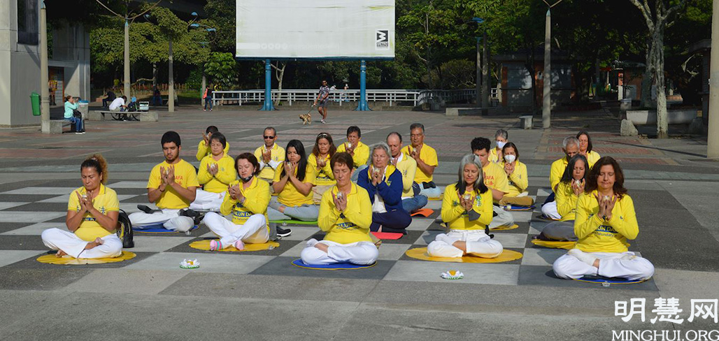 ![]() 图1:哥伦比亚麦德林的法轮功学员集体炼功 |