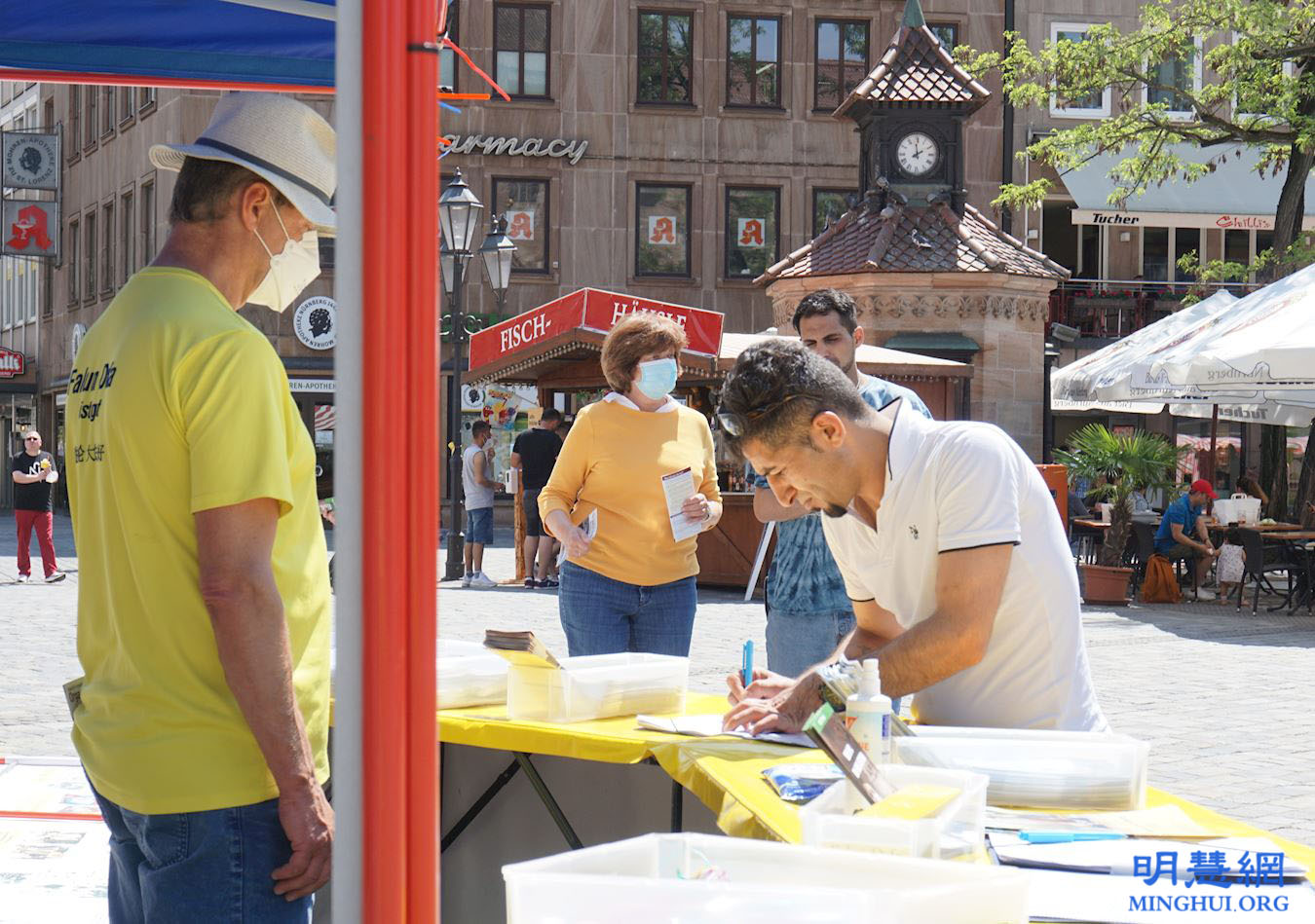 ![]() 图1:二零二一年六月三日,法轮功学员在德国纽伦堡市的洛伦兹教堂前举办信息日,向民众介绍功法,揭露中共对法轮功长达二十多年的残酷迫害,并征集签名反迫害。路人纷纷驻足观看,并签名谴责中共对法轮功学员的迫害。 |
