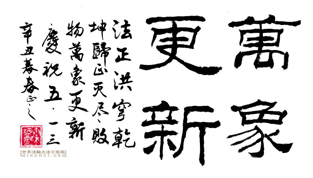 书法:万象更新、缘结莲开 【明慧网】