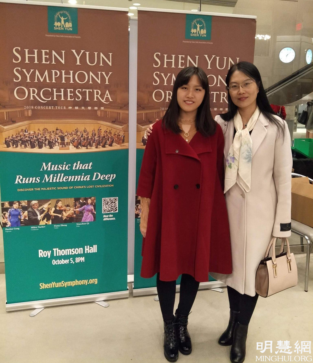 ![]() 图3:二零一八年,雨佳在多伦多和妈妈一起观看神韵。 |